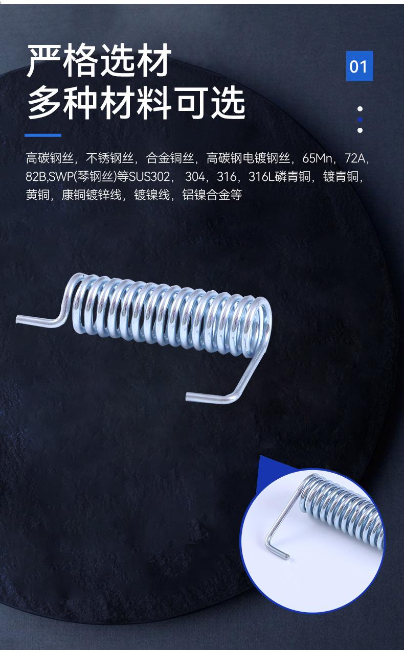 Resortes de torsión de forma especial hechos de acero inoxidable para juguetes eléctricos y aplicaciones automotrices, con diseño de doble gancho para procesamiento de estiramiento y compresión