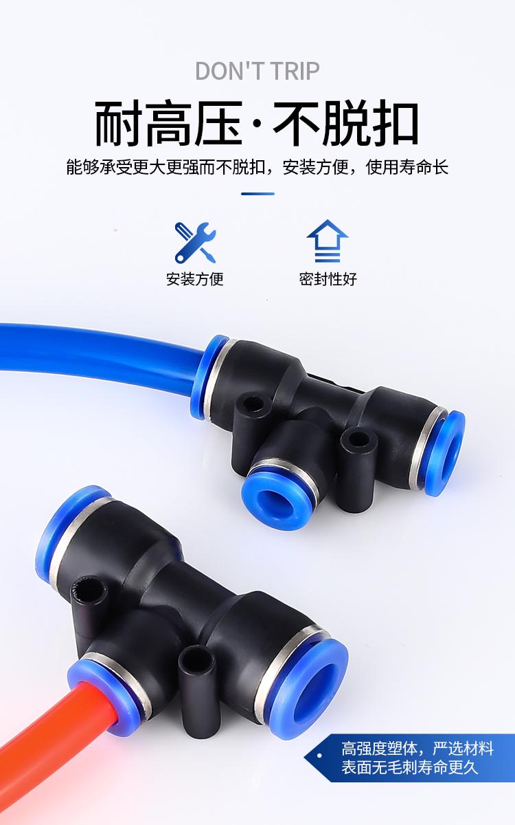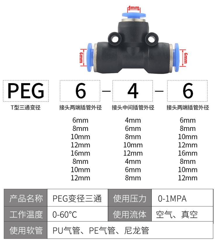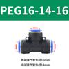 PE4 5 6 8 10 12 Conector rápido de tubería de aire neumática PEG16-14 Te en forma de T de alta presión diámetro 16-8