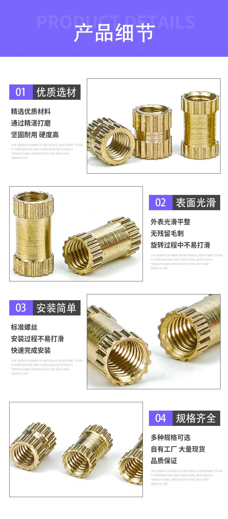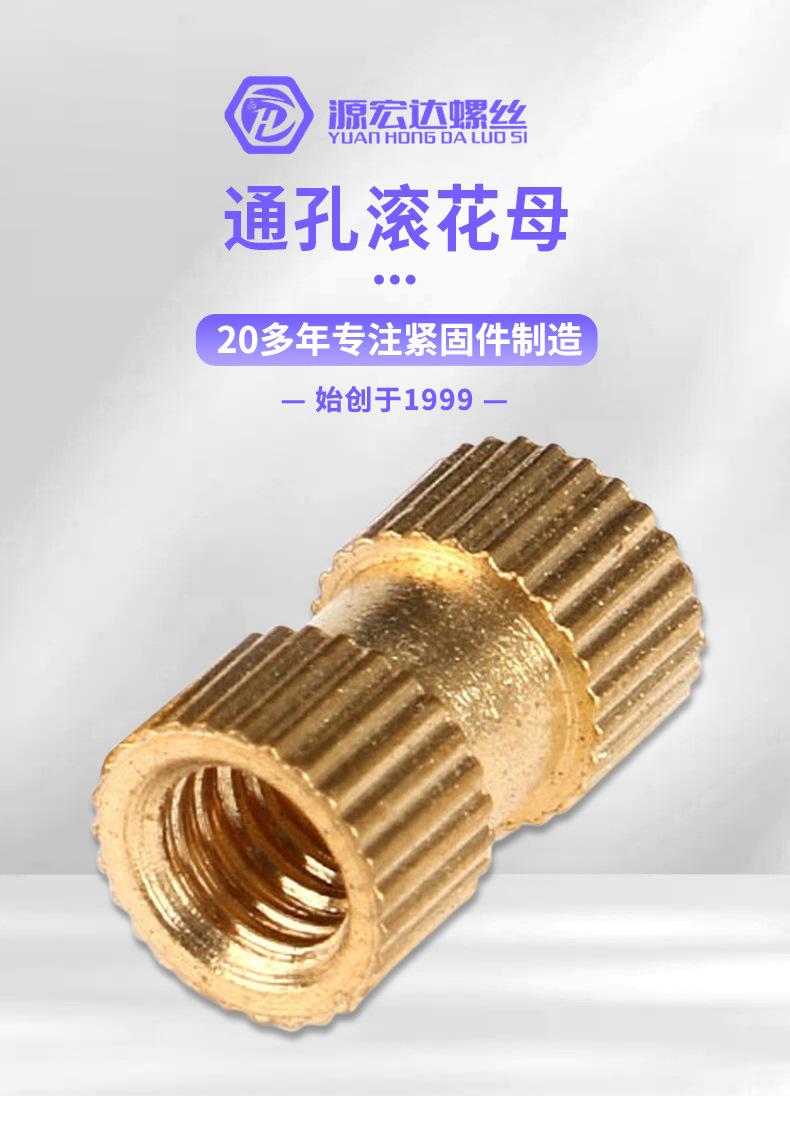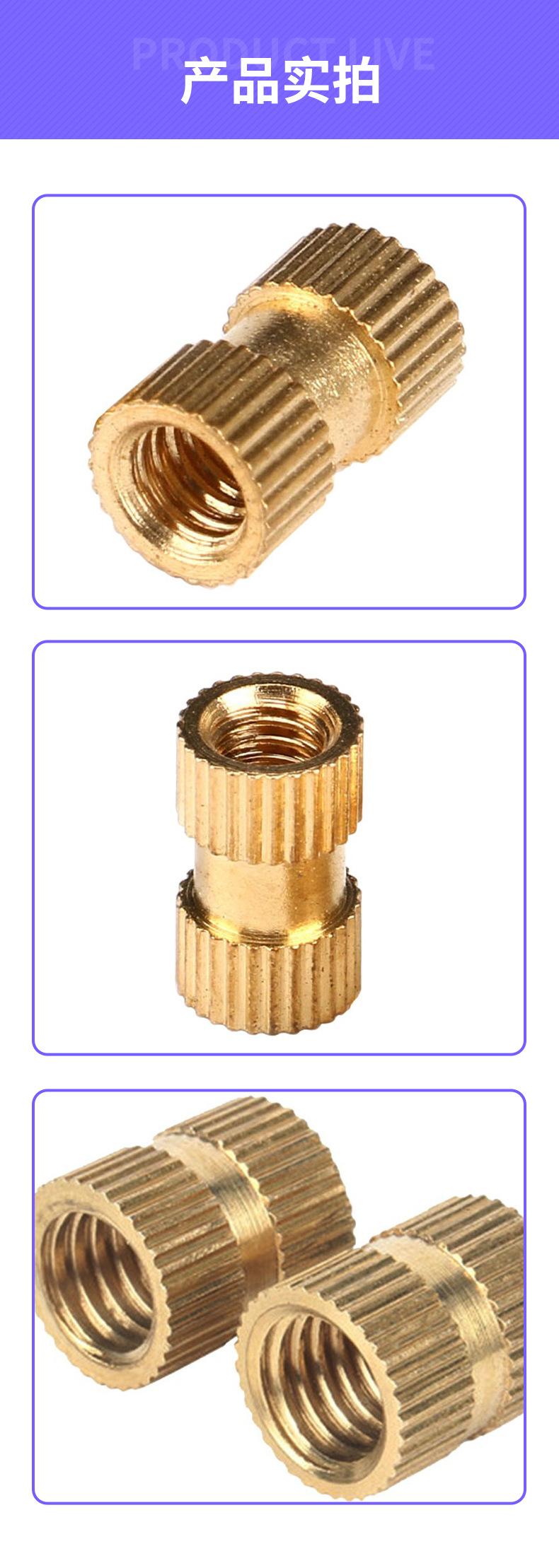 Tuerca de cobre termofusible con incrustaciones moleteadas y orificio pasante, tuerca de latón moleteada por inyección M2/M2.5/M3/M4/M5