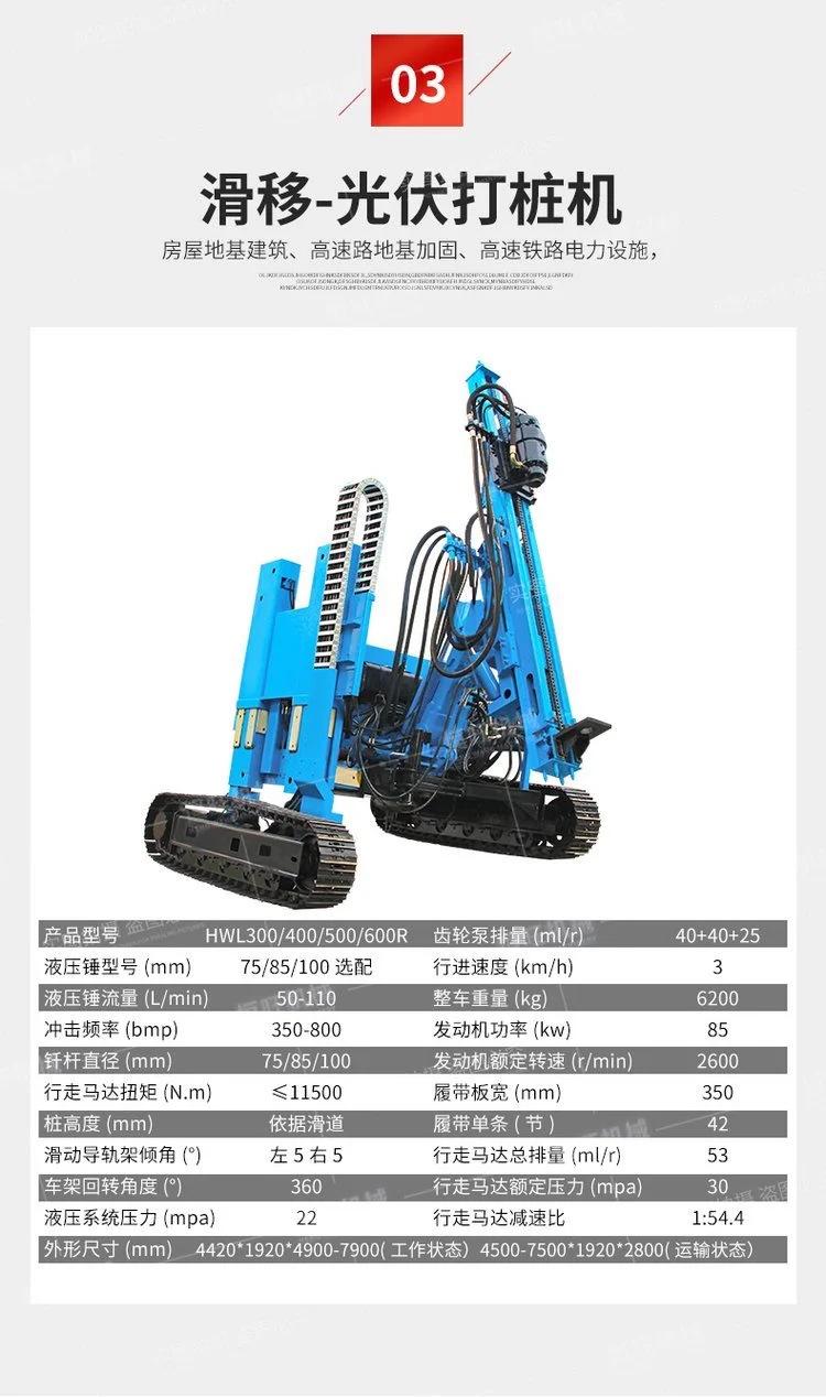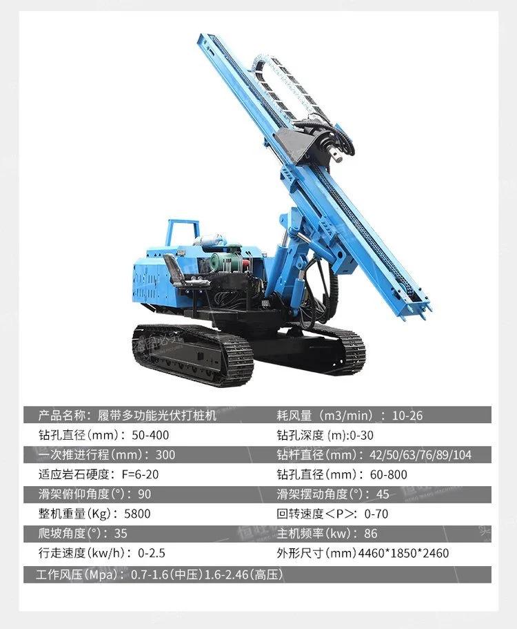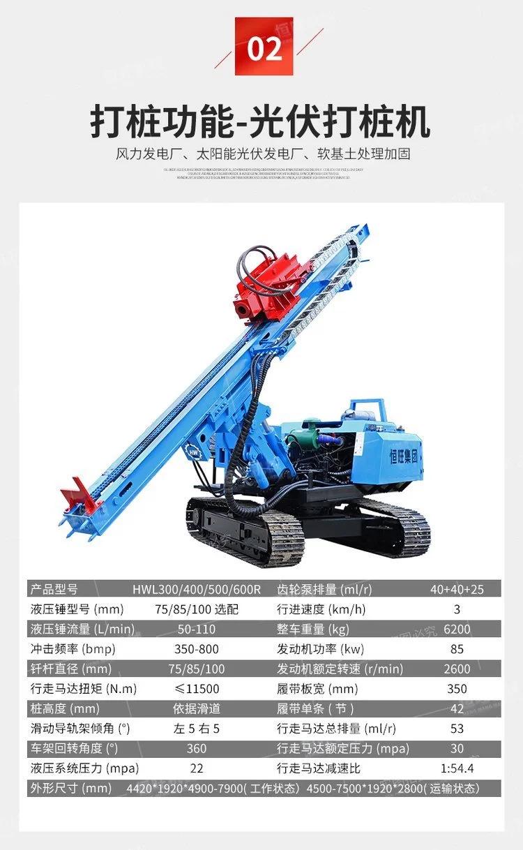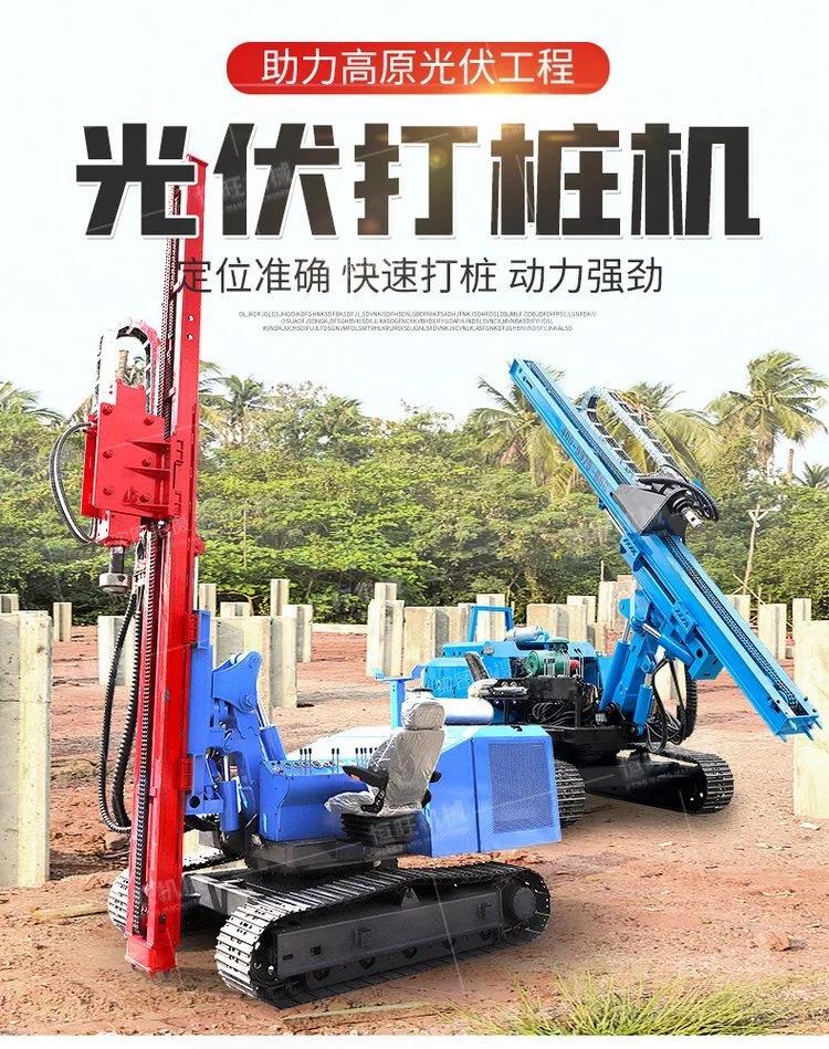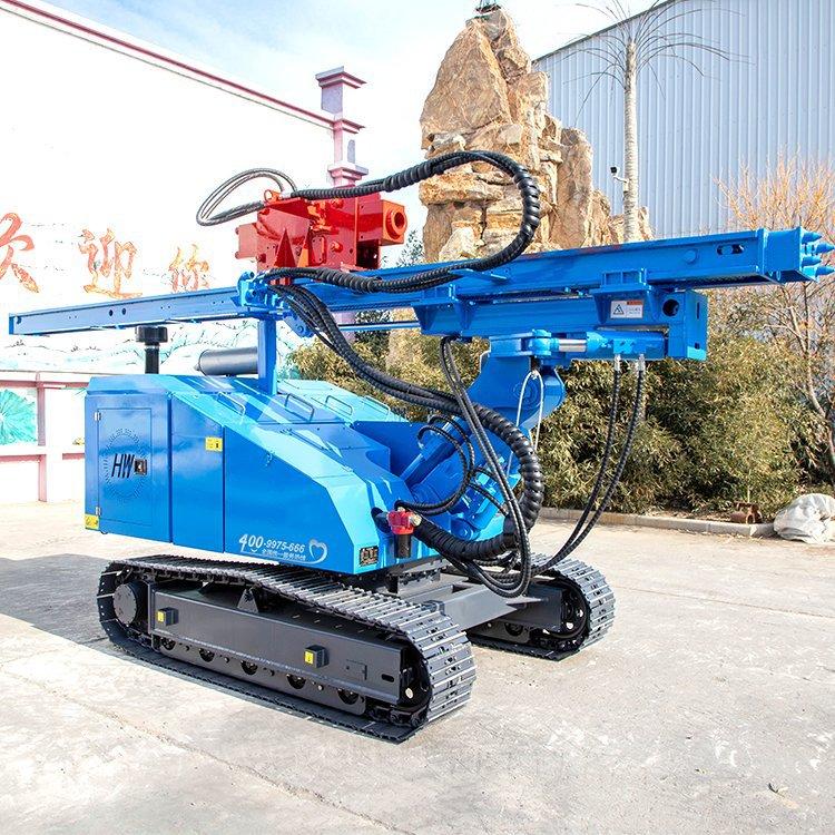 Máquina de pilotaje fotovoltaico de meseta, equipo de ingeniería de perforación espiral hidráulica sobre orugas, máquina de pilotaje de sustrato para centrales solares