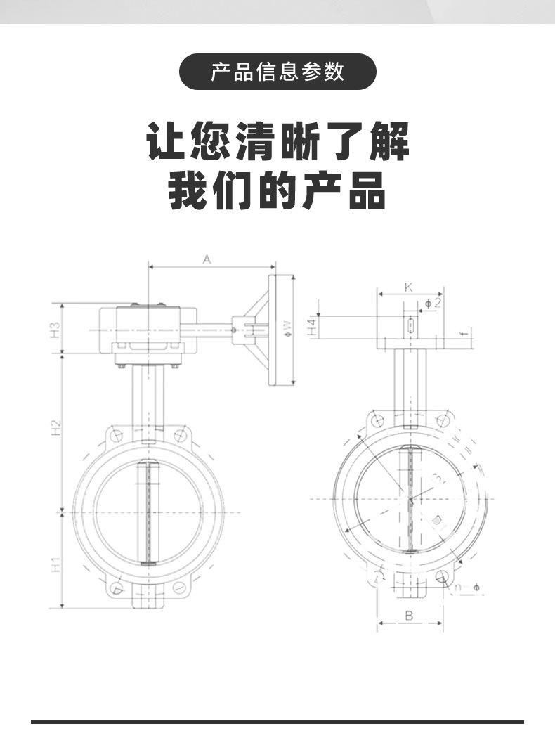 Válvula D371X-16C Acero al Carbono Mariposa Wafer Turbina Sello de Goma Acero al Carbono Válvula de Mariposa Dn100Dn150