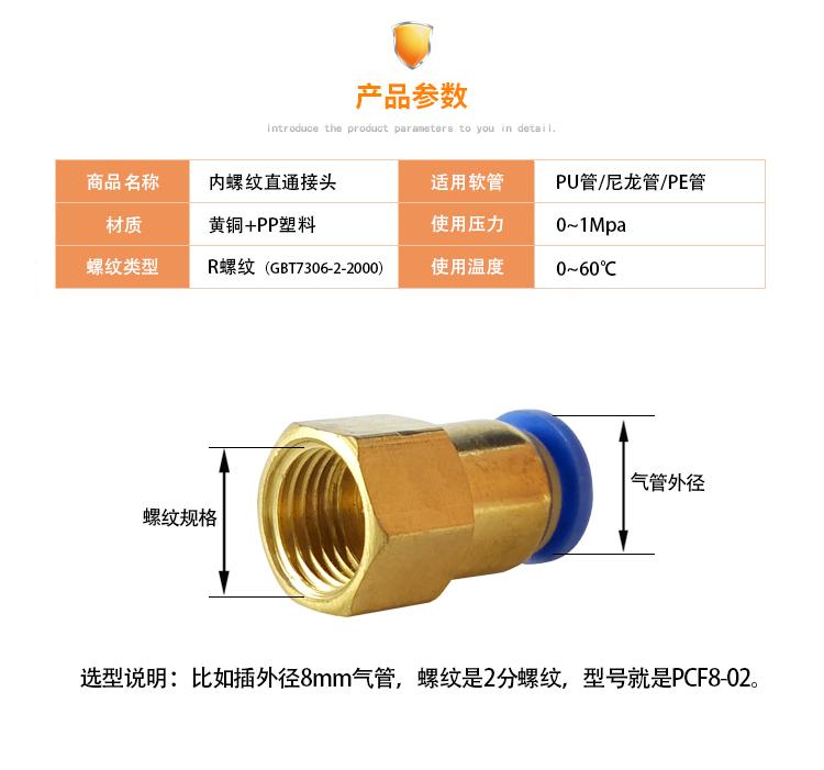 Manguera de cobre, tubería neumática de aire, conector rápido, rosca interna, paso recto, PCF6-01/8-02/10-03/12-04