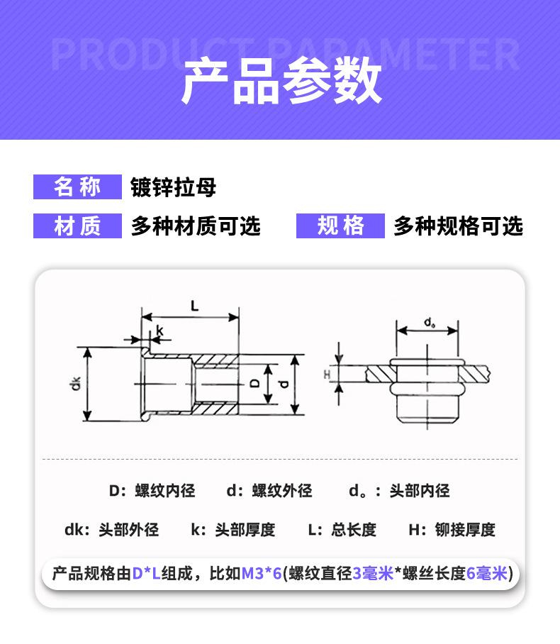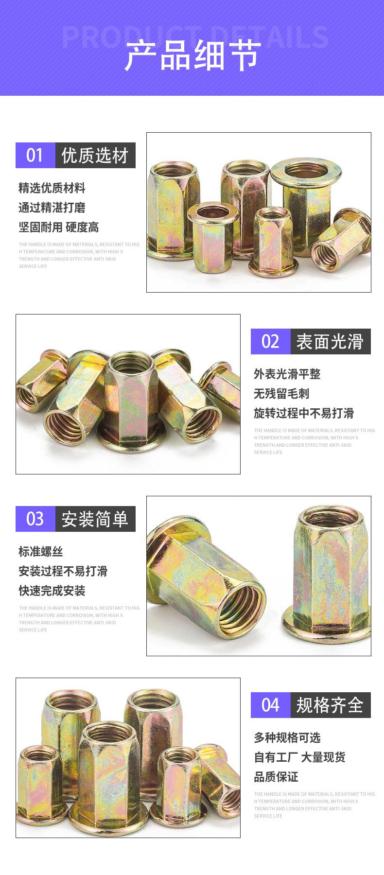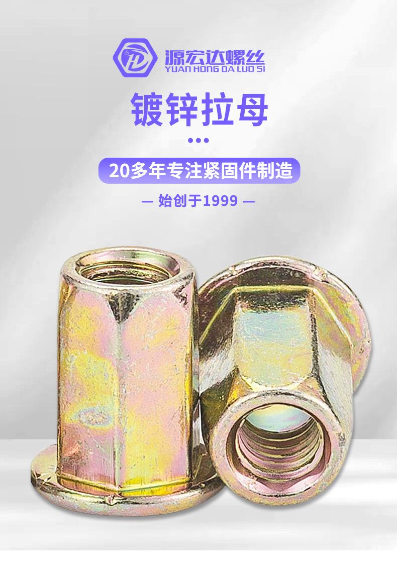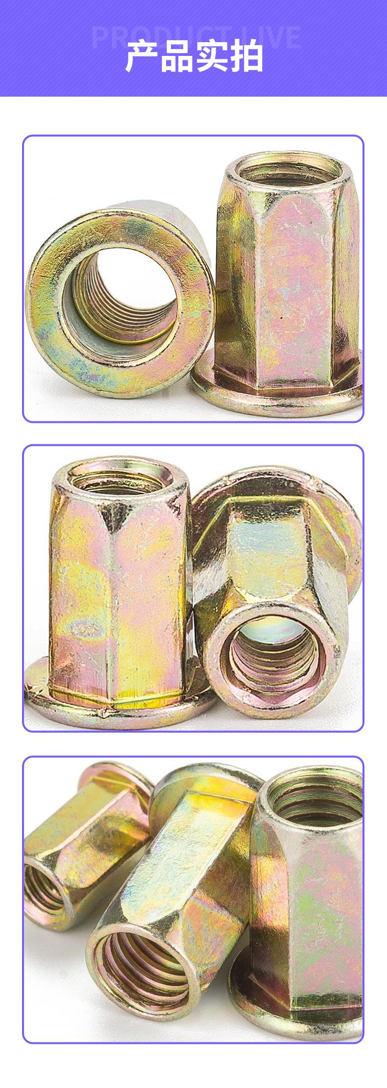 Compra Tuerca hexagonal de cabeza plana galvanizada de acero al carbono, tapa de extracción, orificio pasante hembra, remache de extracción, tuerca de ariete M6/M8/M10 al por mayor en Joom.pro