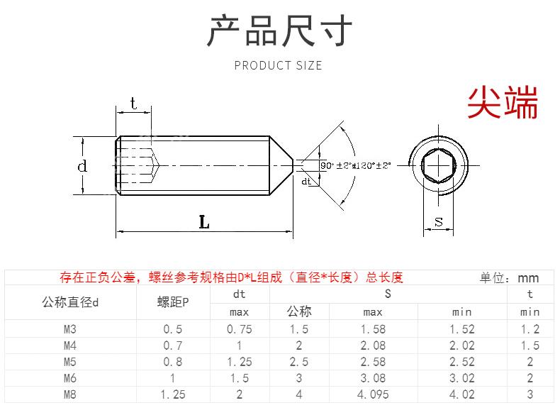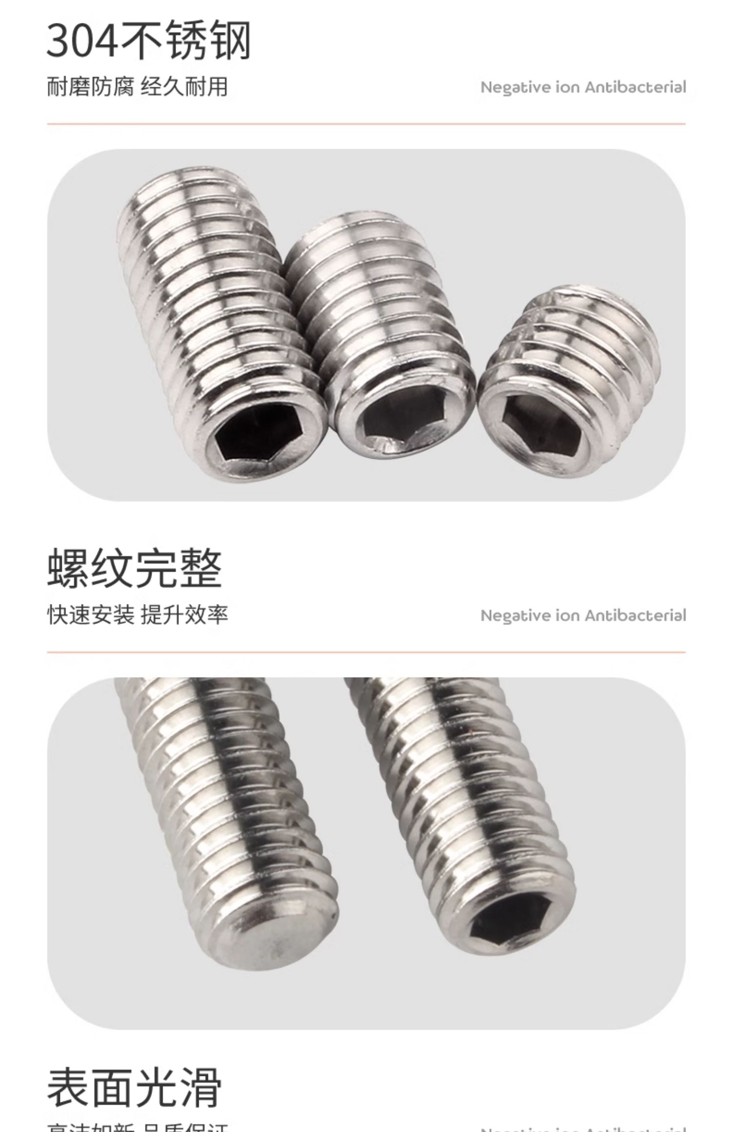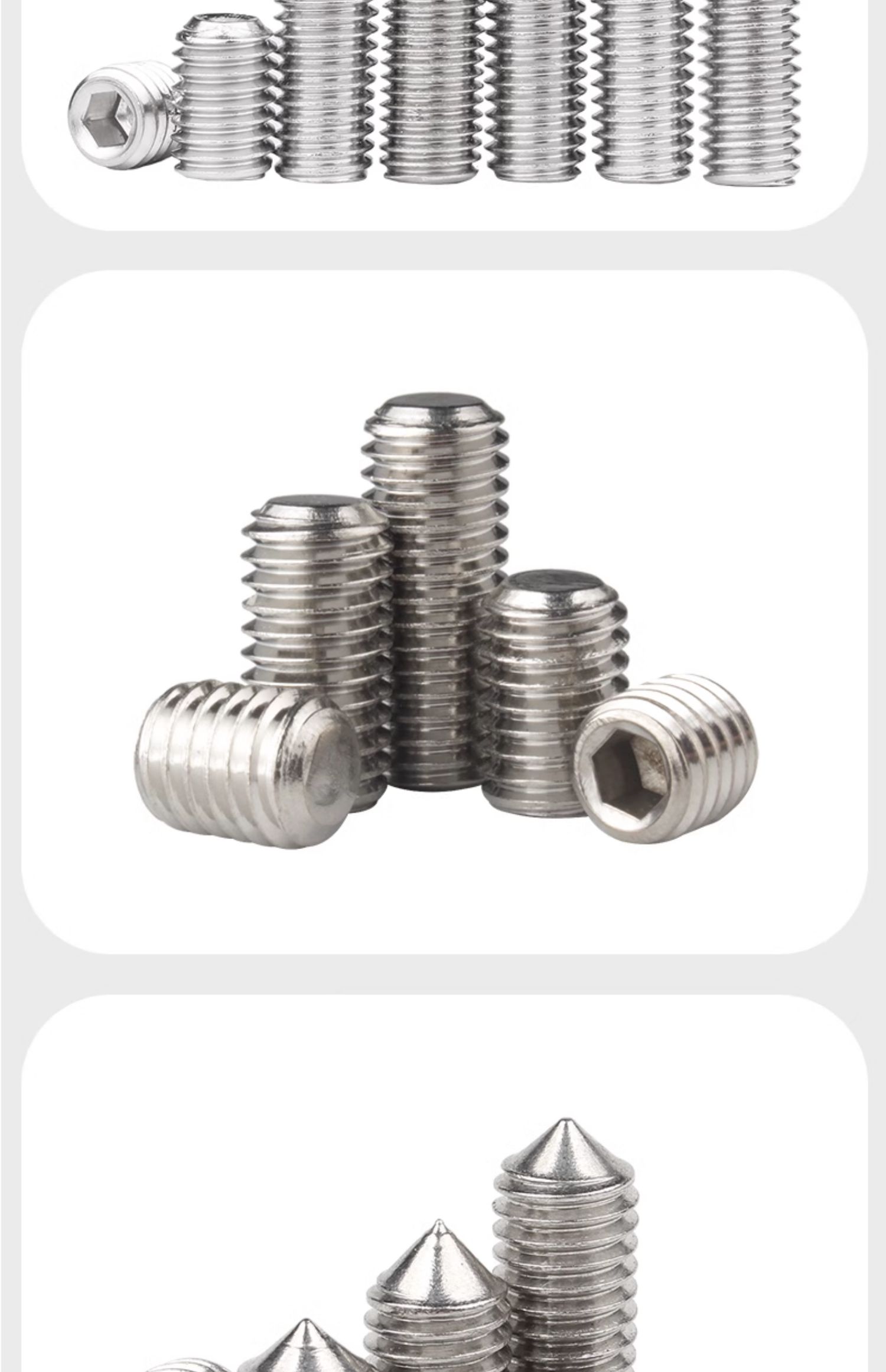 Tornillo de cabeza hueca hexagonal con extremo cóncavo y punta plana de acero inoxidable 304, tornillo de elevación M2-M16