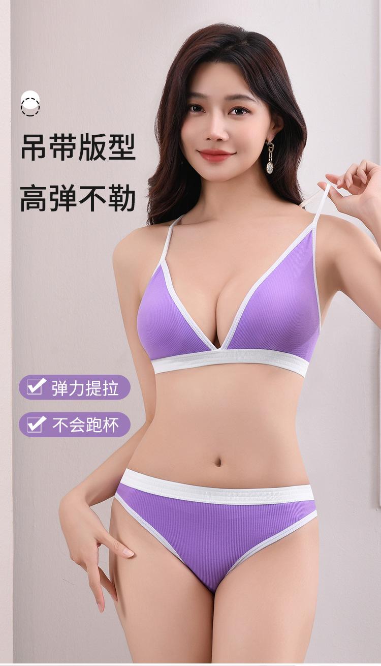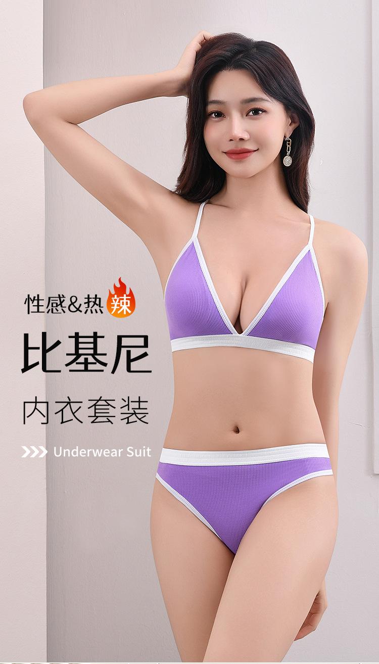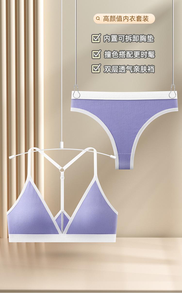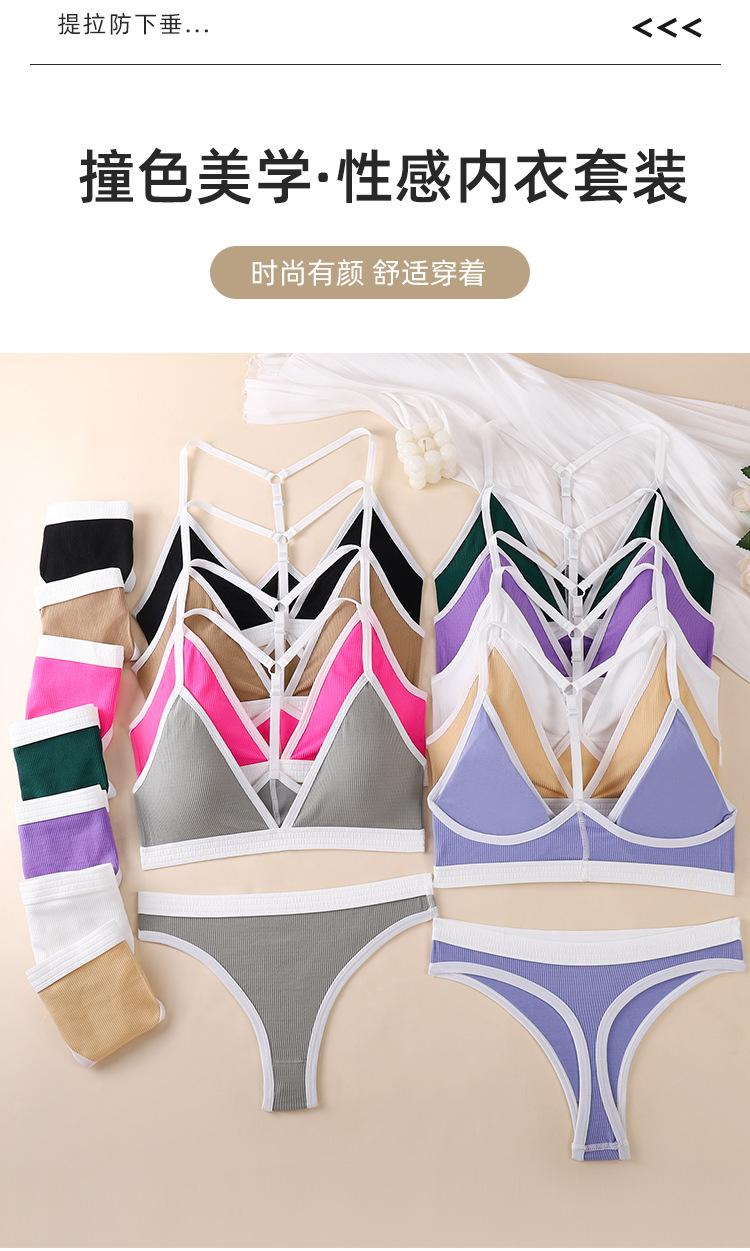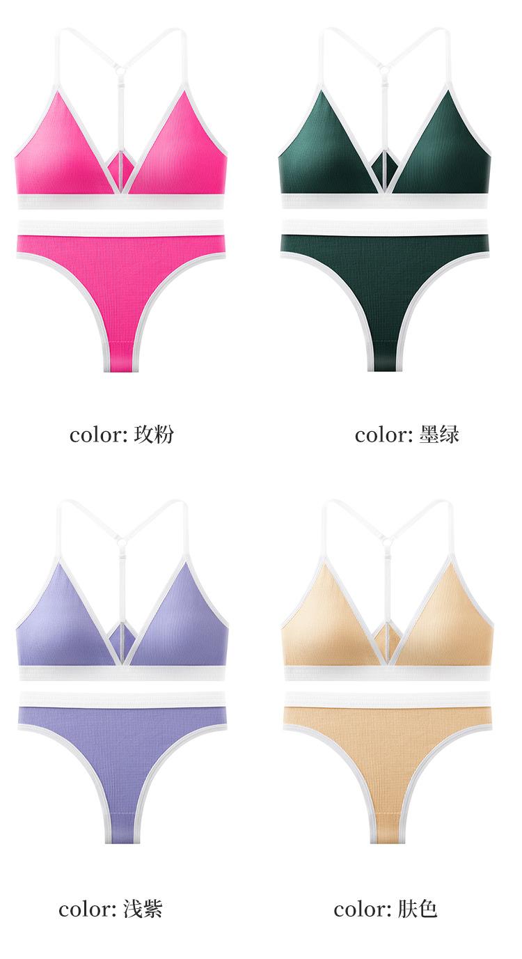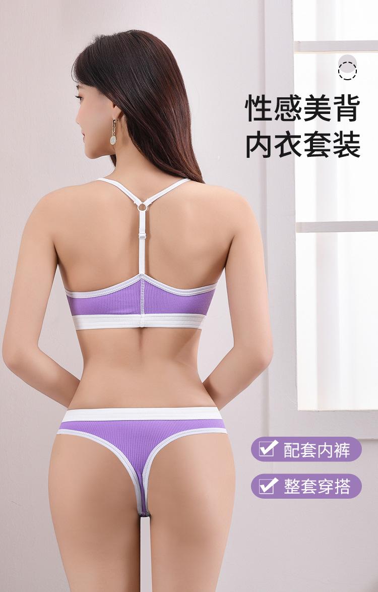 Nueva Tanga Transfronteriza de Espalda Hermosa Ropa Interior Traje Deportivo para Mujer de Color Dividido con Hilo Push-up Sexy Traje de Sujetador Francés