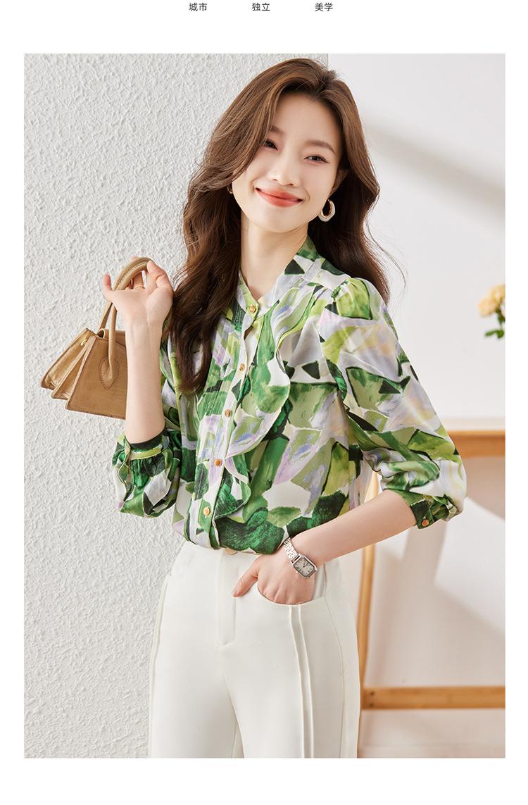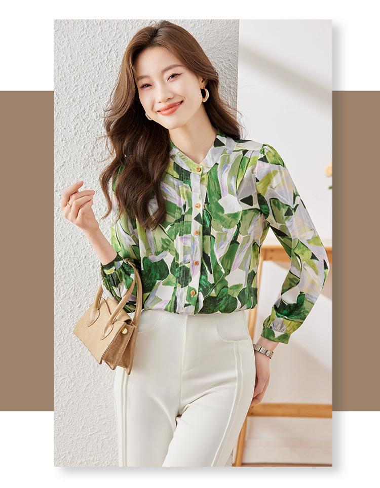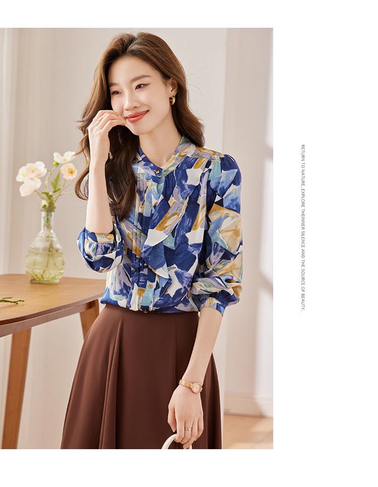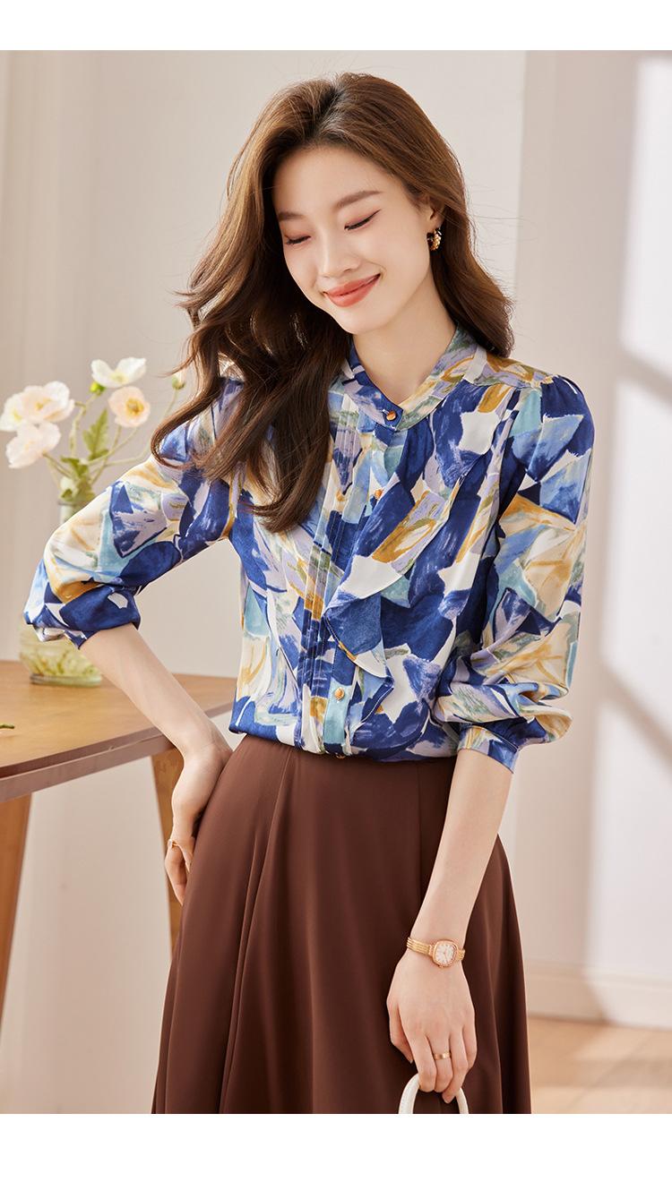 Camisa de gasa colorida para mujer, otoño 2023, nueva, elegante, profesional, pequeña, de moda, elegante.