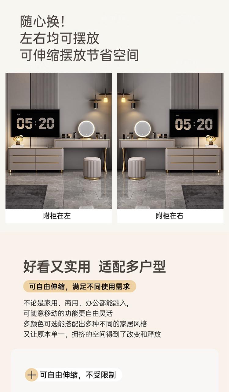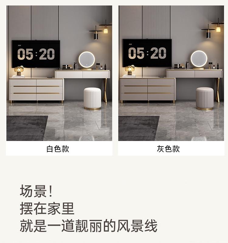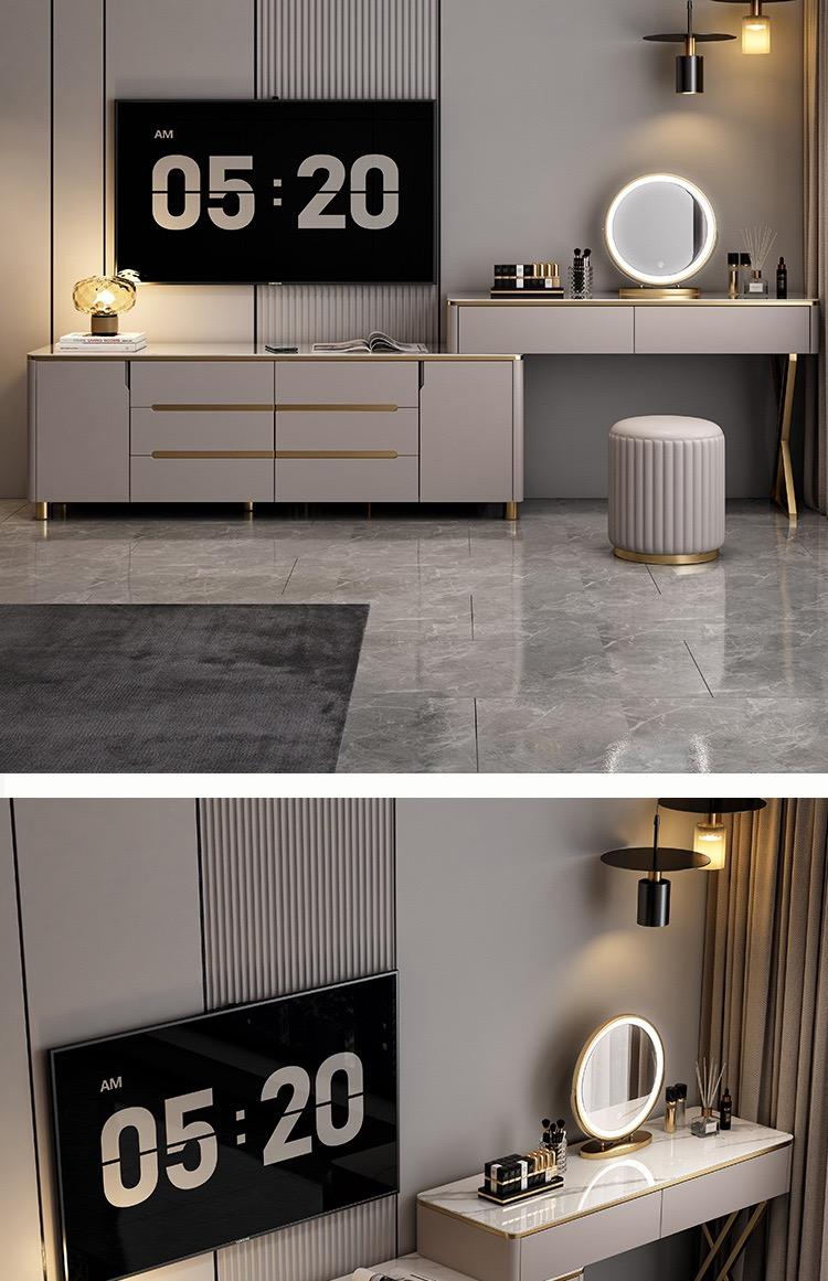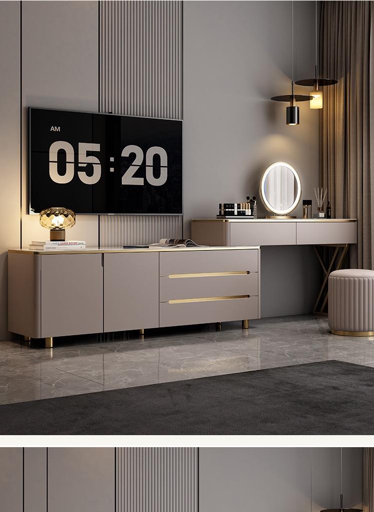 Madera Maciza Lujo Ligero Tocador con Placa de Roca Gabinete de Cubo Integrado Dormitorio Gabinete de Almacenamiento Multifuncional Pequeño Apartamento Mueble de TV Esquina