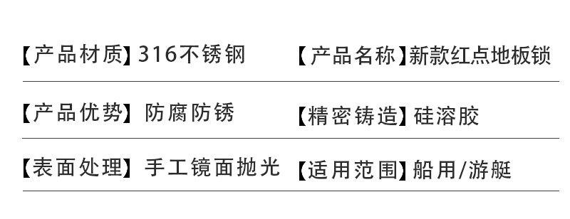 Cerradura de piso de punto rojo de acero inoxidable 316 para yate, barco, accesorios de cubierta para lancha rápida, cubierta de caja con hebilla de piso de fundición X20