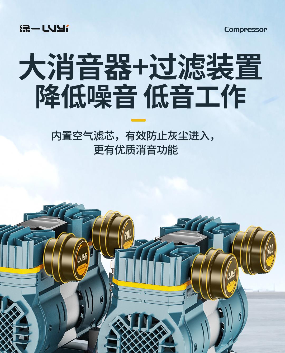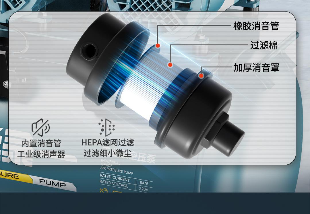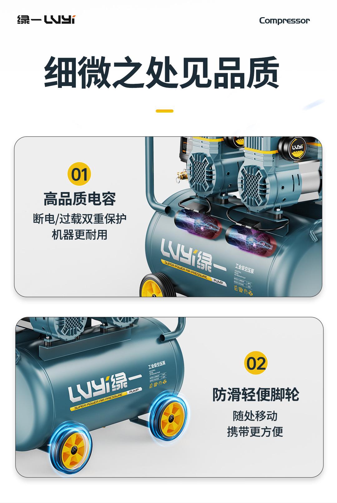 Compresor de aire sin aceite, bomba de aire silenciosa, compresor de aire de grado industrial, pequeño, 220 V, portátil, para carpintería, bomba de aire de alta presión