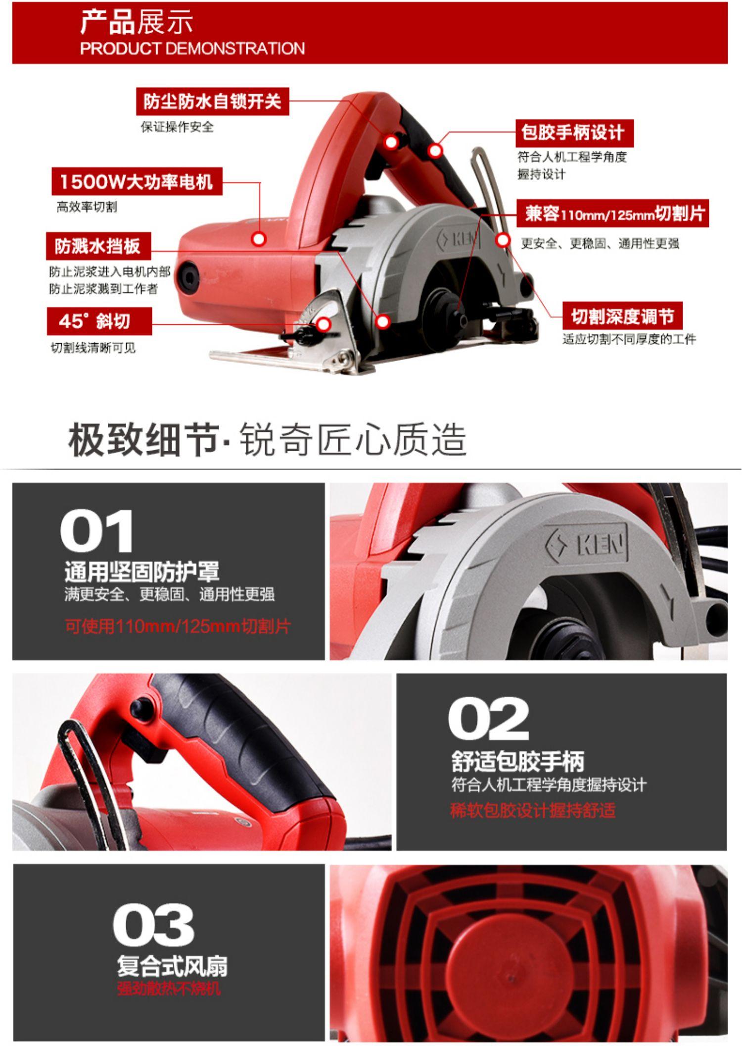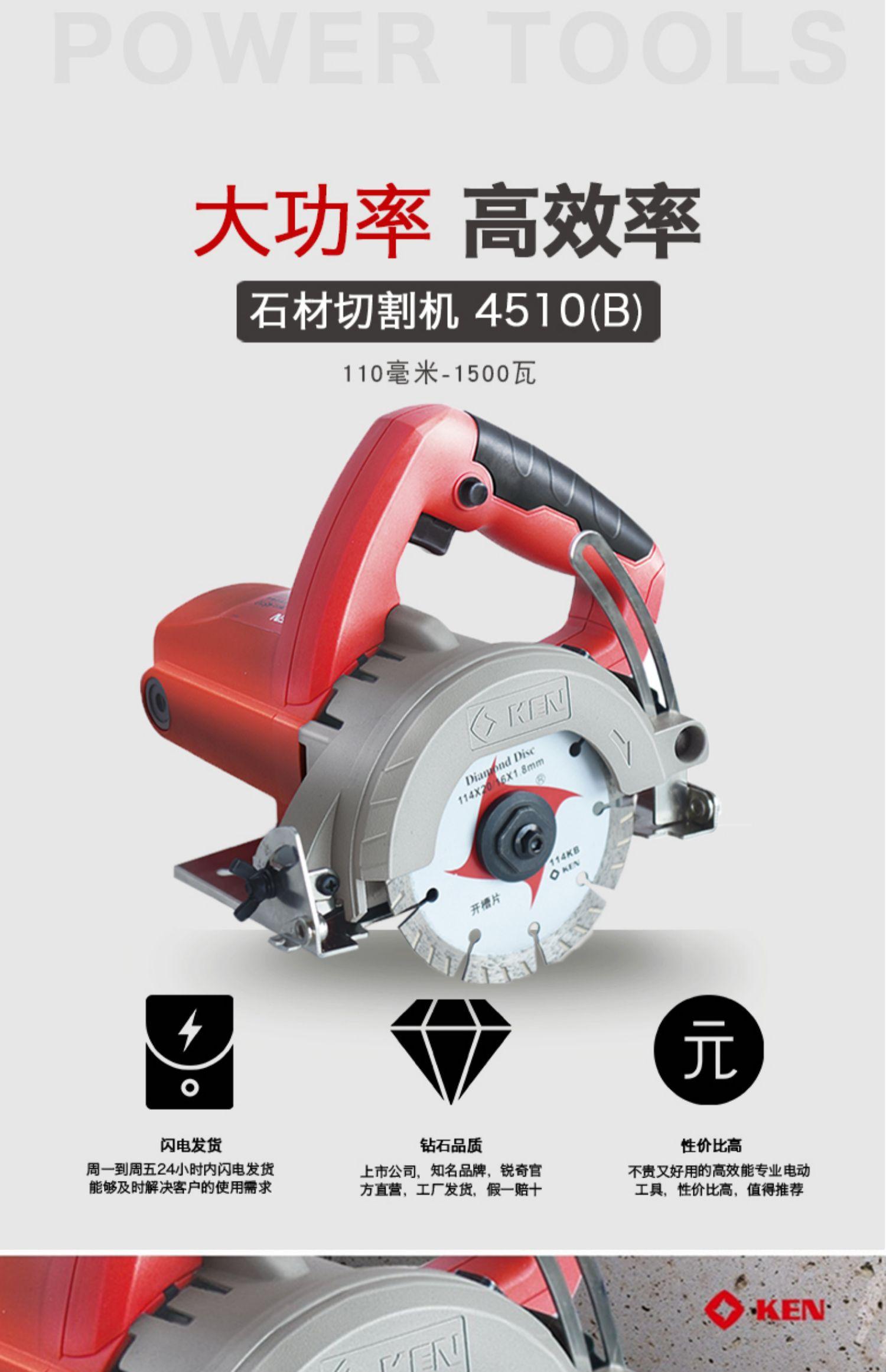 Máquina cortadora de mármol y baldosas de piedra Shanghai KEN Ruiqi 4510B, máquina ranuradora hidroeléctrica de alta potencia, puede ser de 125 mm