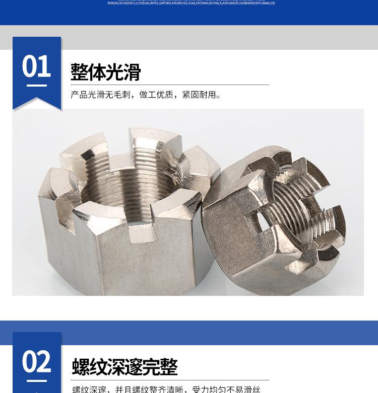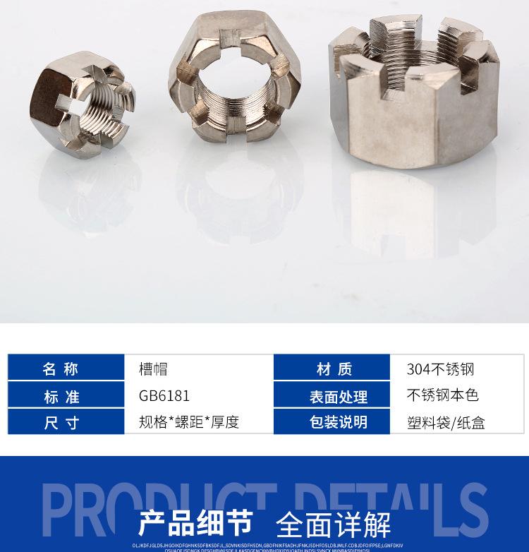 Tuerca hexagonal ranurada de acero inoxidable 304 tuerca ranurada GB6181 M22M24M27M30M33 * 1.5*2