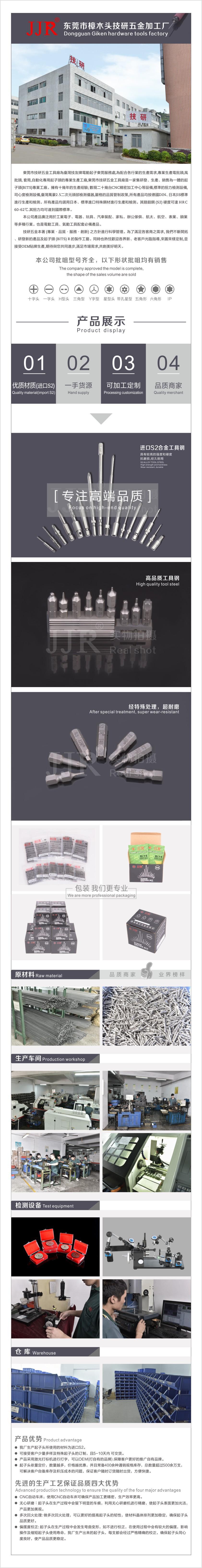 Dongguan Jiyan Hardware Tool Factory es una fábrica profesional de puntas de destornillador (puntas de lote) que integra I+D, producción y ventas. La empresa cuenta con décadas de experiencia en producción, decenas de máquinas herramienta de precisión, equipos de prueba estándar y estrictas políticas de gestión de calidad. Todos sus productos se fabrican y prueban de acuerdo con las normas DIN (Alemania), JIS (Japón) y ANSI (Estados Unidos). Todos sus productos se fabrican con precisión con materiales especiales importados de Japón y Alemania. La dureza del acero al cromo-molibdeno (S2) puede alcanzar HRC60-62 °C, y su par de torsión cumple con los estándares internacionales.