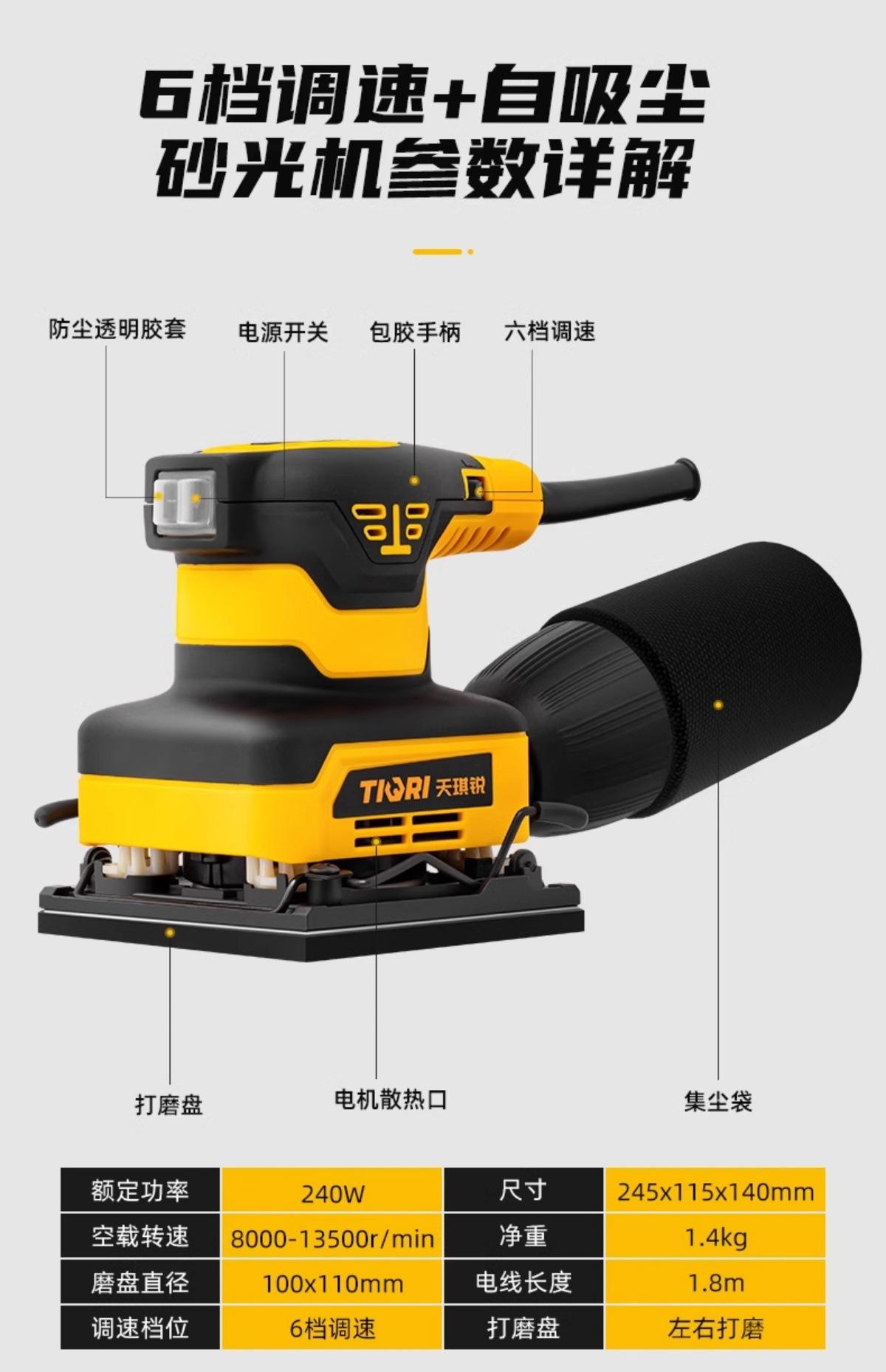 La lijadora de paredes Tianqi Rui incluye una máquina pulidora de metales con succión de polvo y un artefacto para pulir madera y masilla de pared.