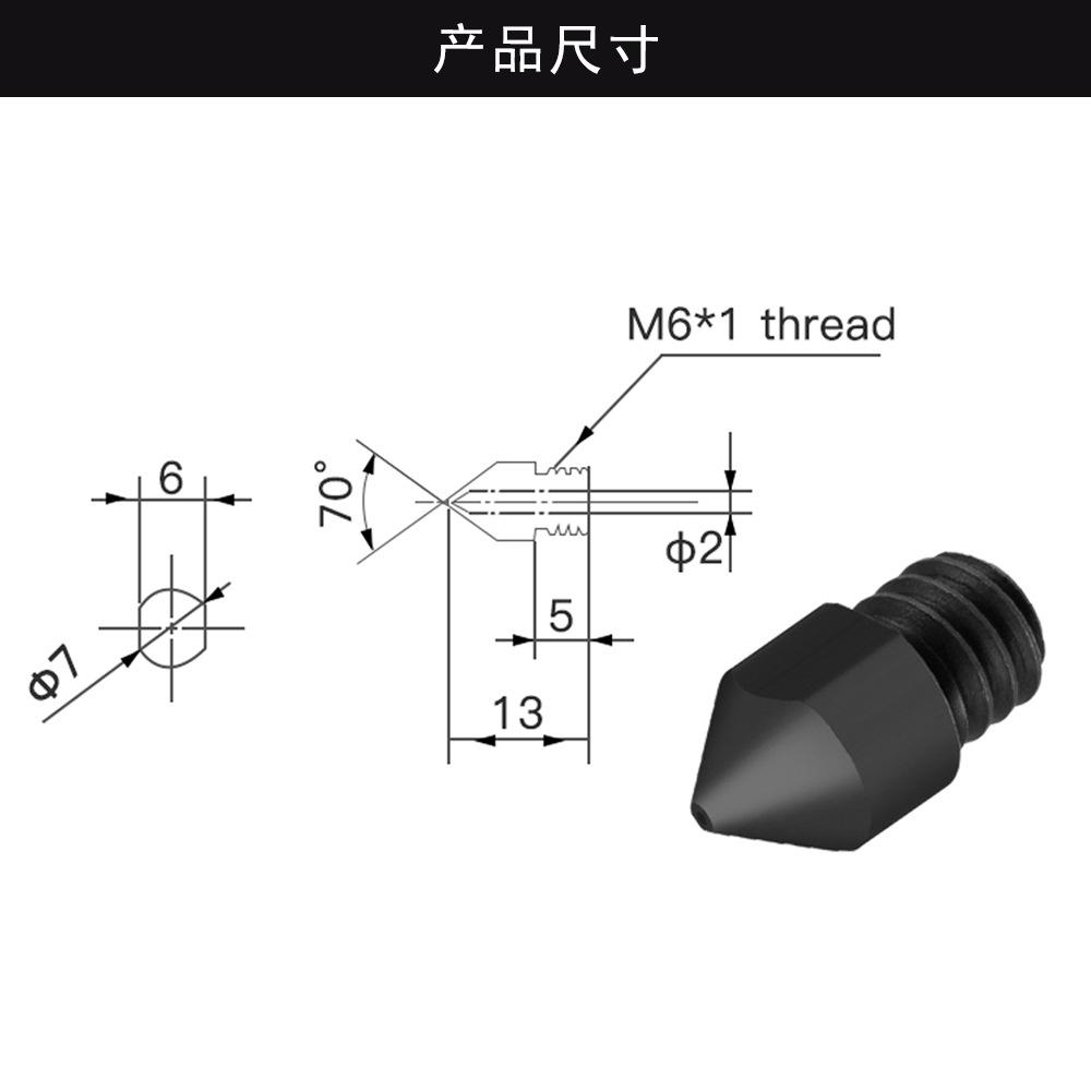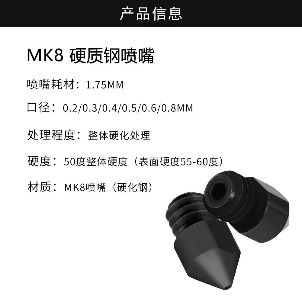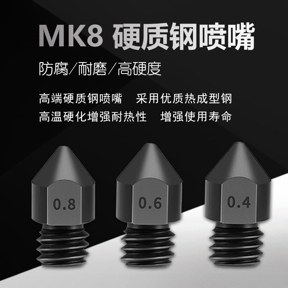 Boquilla de acero duro MK8 para impresora 3D, cabezal de impresión resistente al desgaste, boquilla de acero con rosca M6 de 1,75 mm de alta dureza