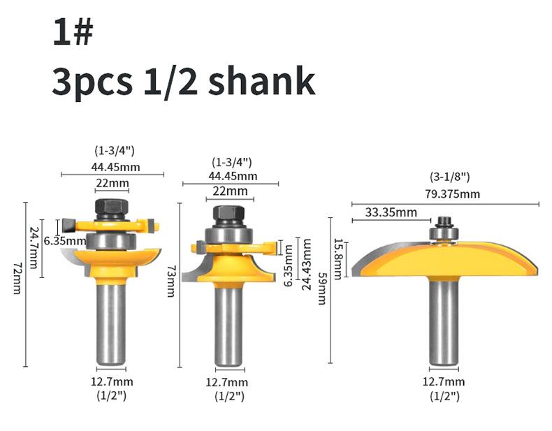 Compra Fresa de mortaja y espiga de tres cuchillas con forma de pez vástago de 1/2 cortador de placa de puerta lateral r doméstico cortador de mortaja y espiga oeste juego de 3 piezas cortador de moldura de línea de marco de puerta fresa al por mayor en Joom.pro