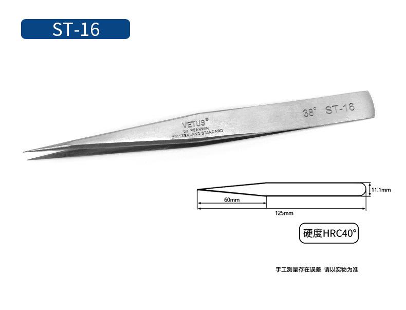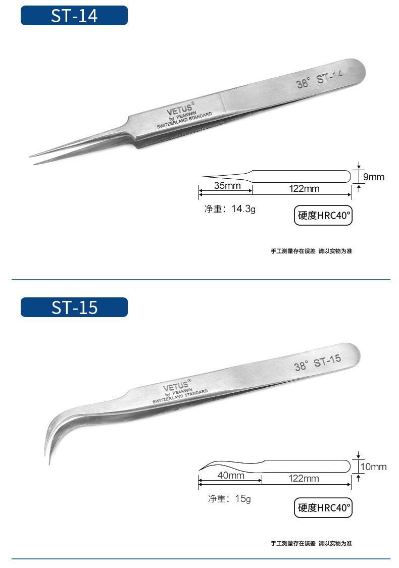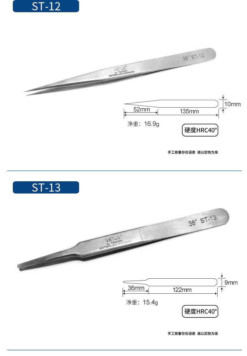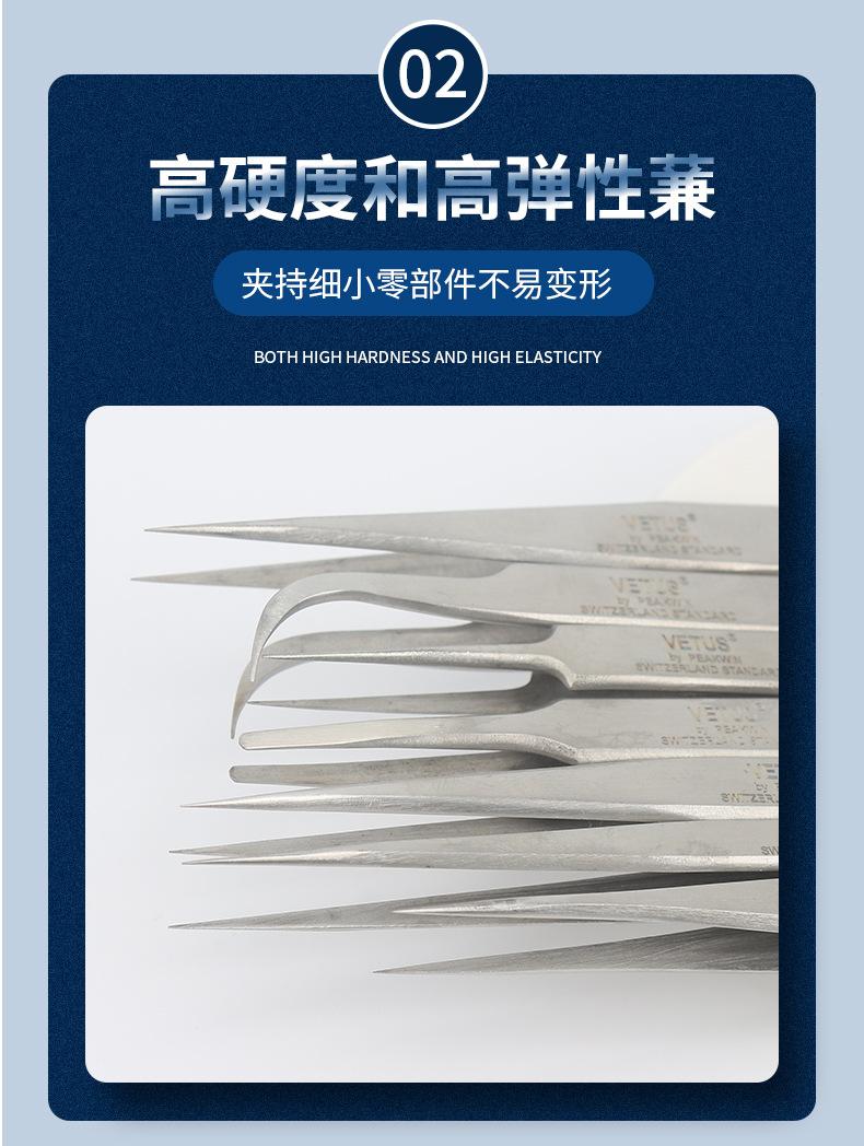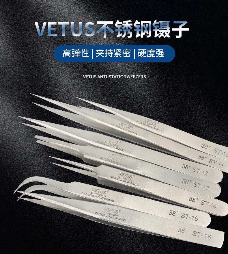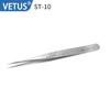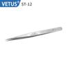 Pinzas VETUS de acero inoxidable con codo recto para reparación de teléfonos móviles, pinzas para recoger pelos, HRC38, puntos negros, herramienta para manicura ST-12