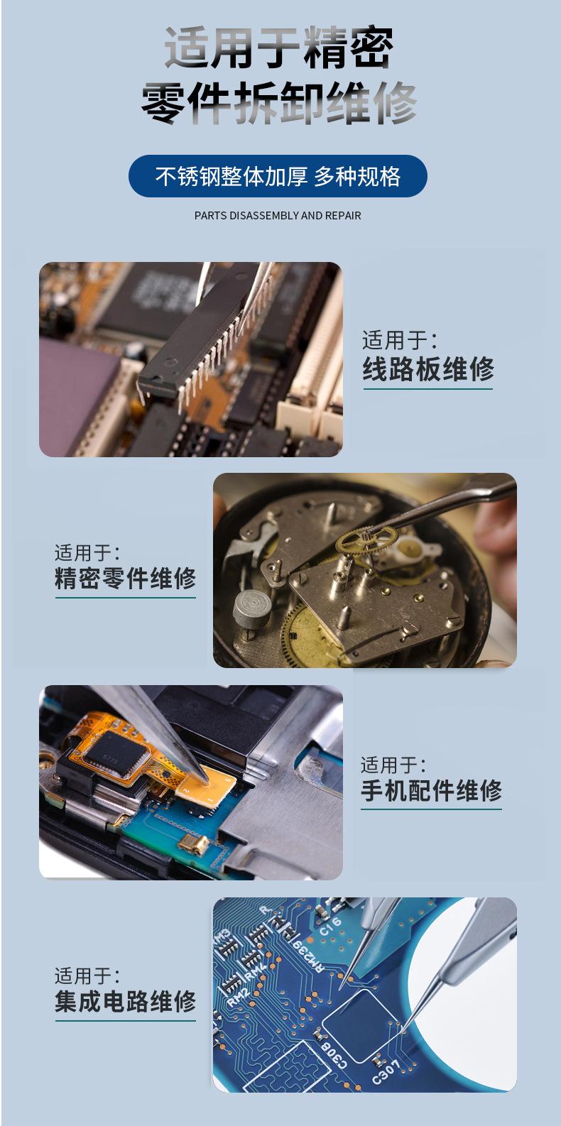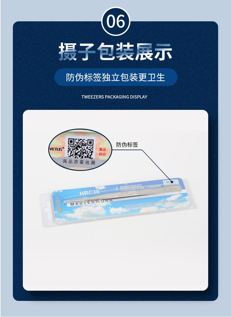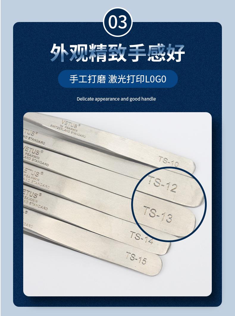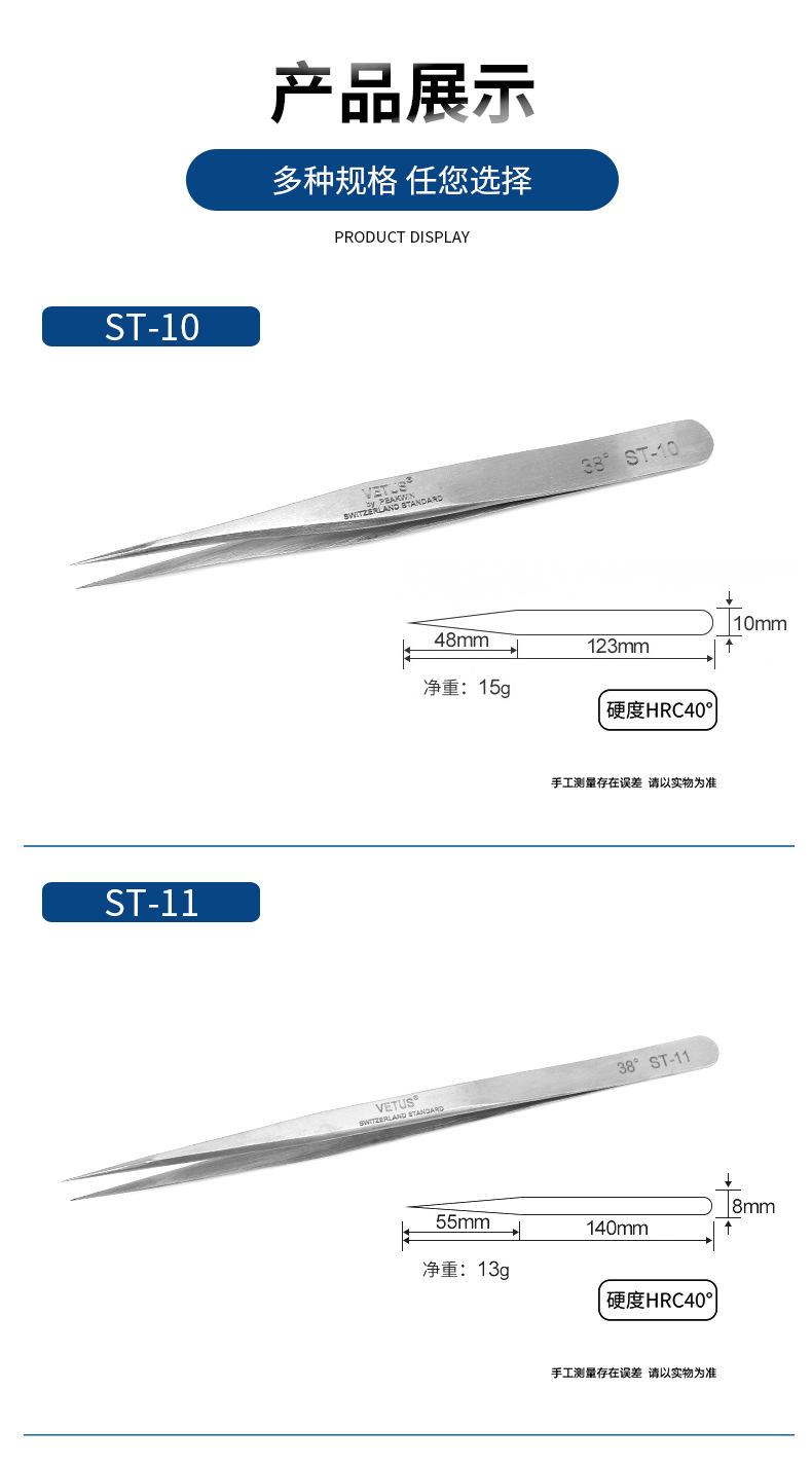 Pinzas VETUS de acero inoxidable con codo recto para reparación de teléfonos móviles, pinzas para recoger pelos, HRC38, puntos negros, herramienta para manicura ST-12