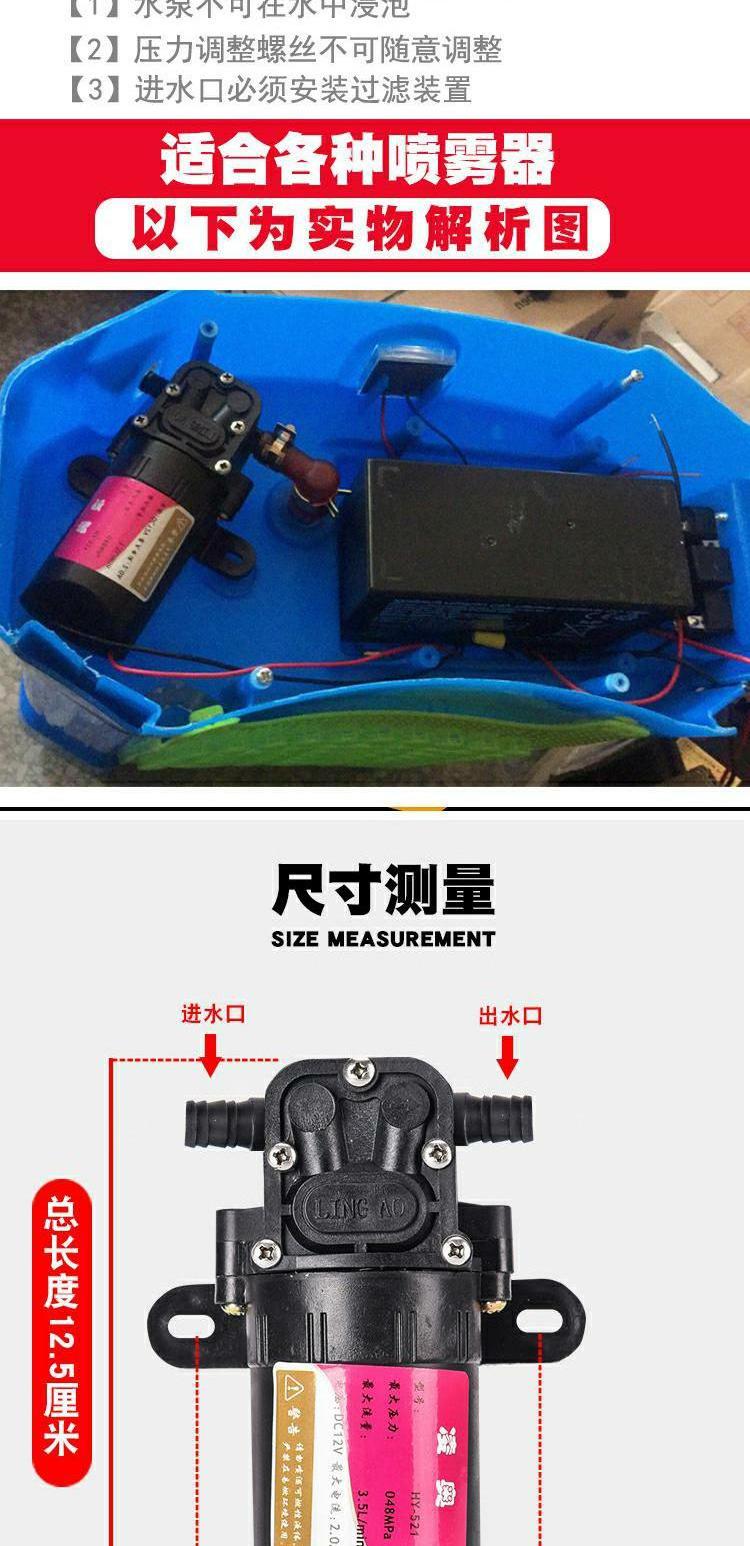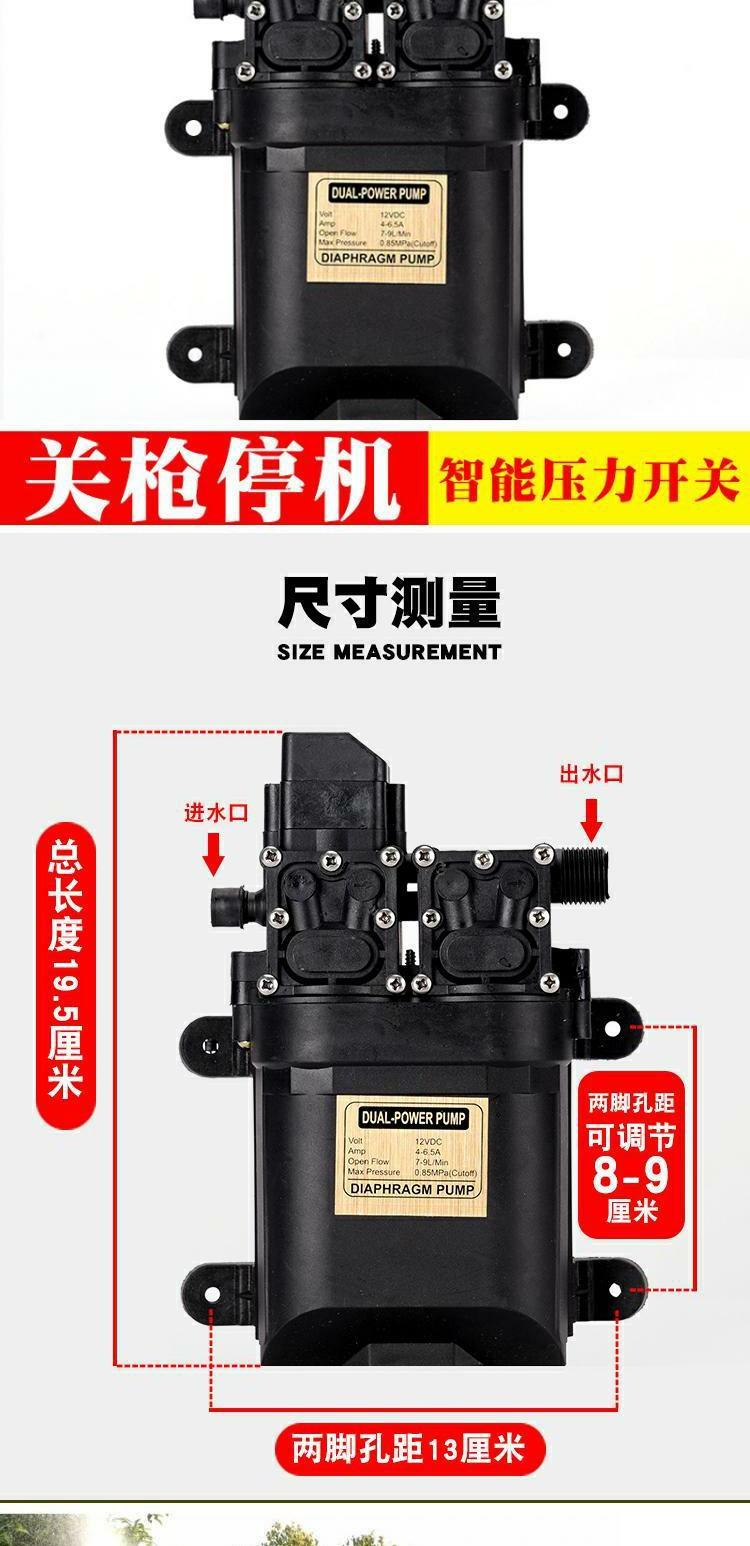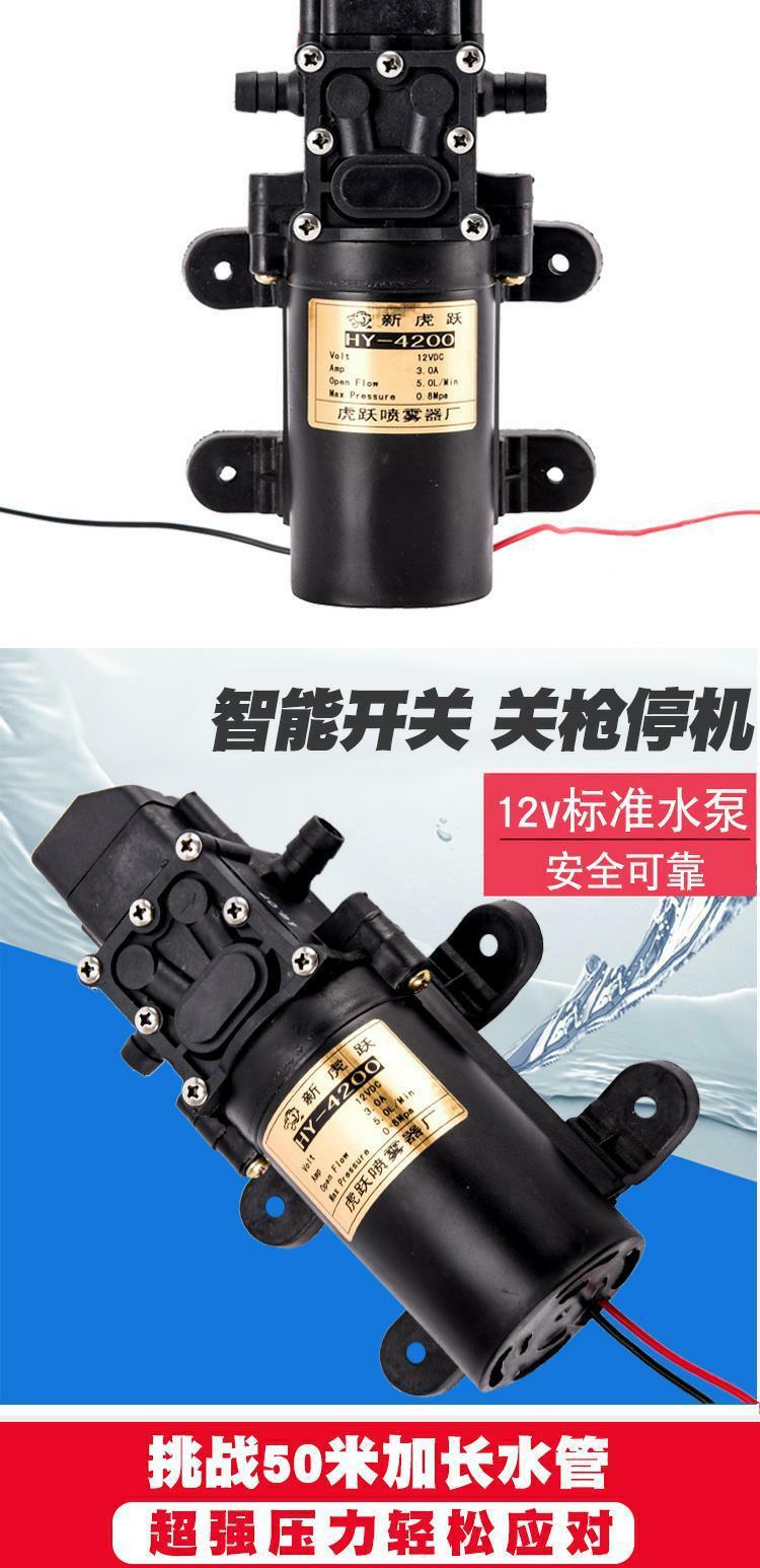Bomba de agua pulverizadora eléctrica Huyue 12V agrícola alta presión inteligente autocebante 12V alta potencia motor de doble bomba motor