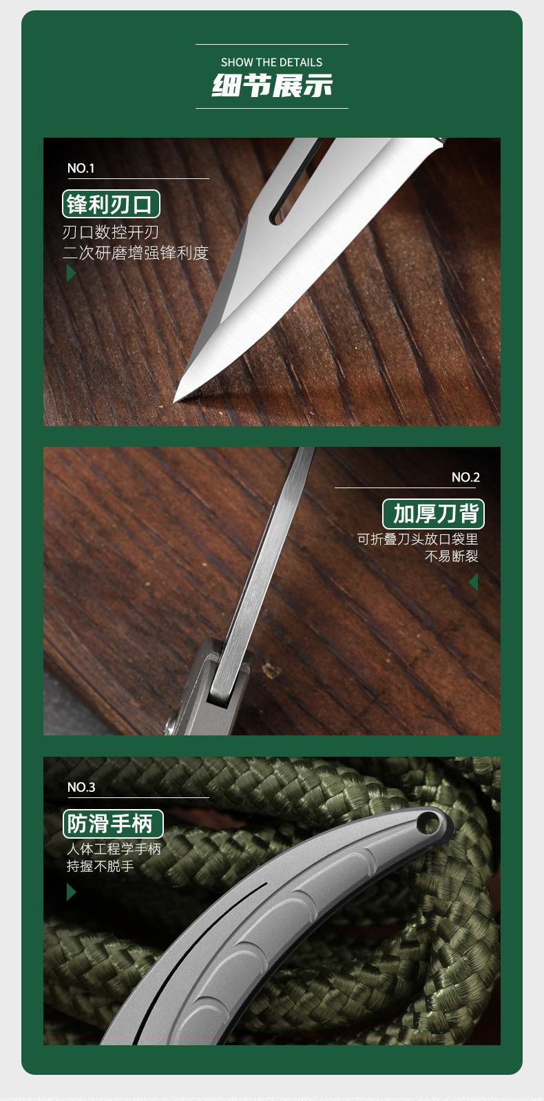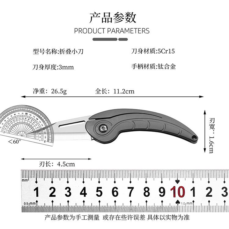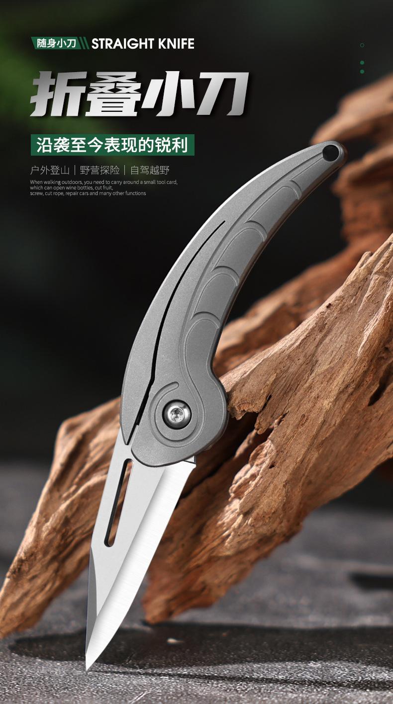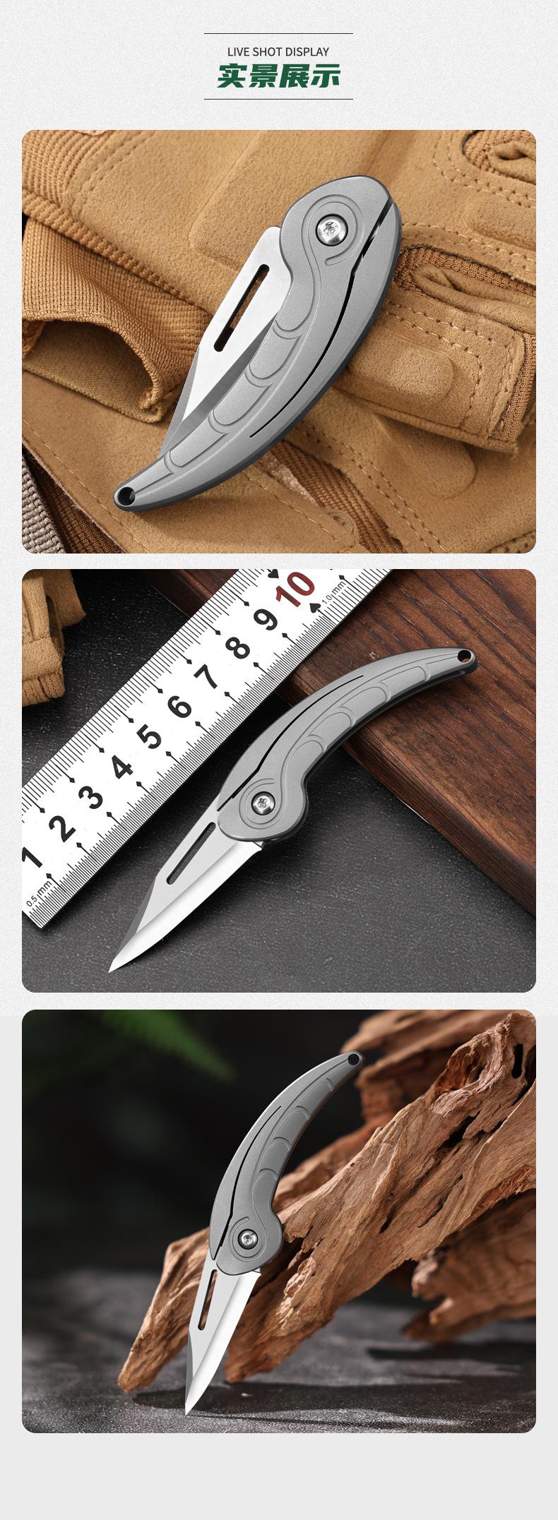 Minicuchillo EDC plegable para exteriores con mango de aleación de titanio, cuchillo colgante portátil de uso diario, cuchillo plegable con llavero portátil