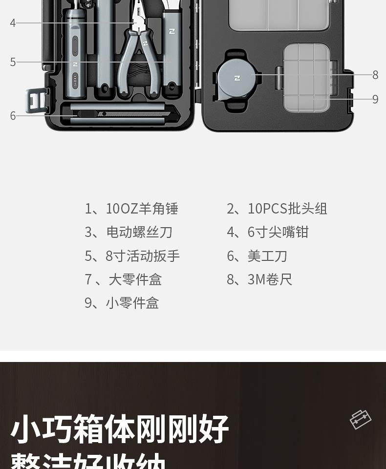 Multi-specification batch head-light luxury household toolbox suit [raw material with art blades 10]]