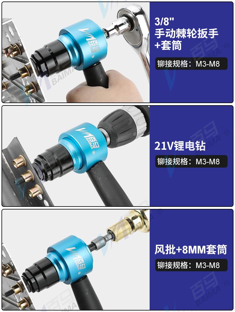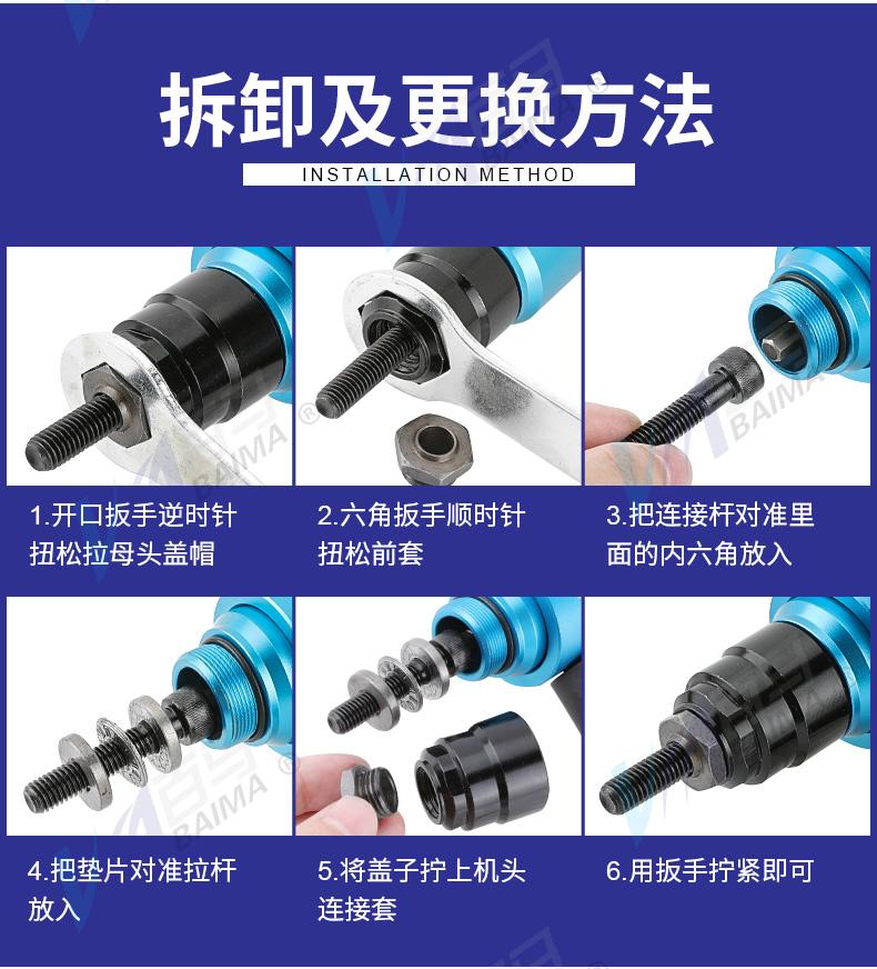 Pistola remachadora neumática eléctrica Baima SW8, pistola remachadora para tuercas, pistola remachadora para tuercas, pistola remachadora para tuercas, pistola remachadora para ariete