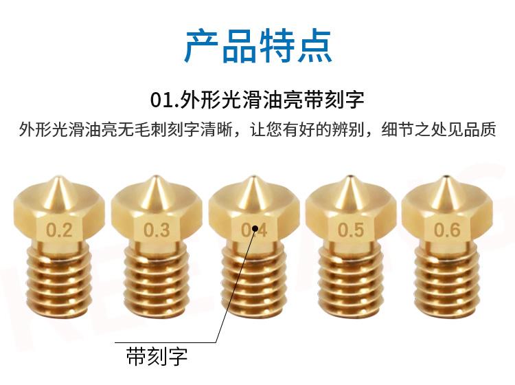 Accesorios para impresora 3D Boquilla E3D E3D-V5 V6 Rosca M6 1.75/3.0 Consumibles Boquilla de letras de latón