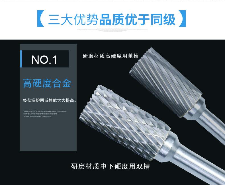 Cabezal de rectificado de acero de tungsteno, herramienta de corte eléctrica, lima rotatoria de carburo, fresa de acero negro, taladro de rectificado de metal, cabezal de rectificado interno
