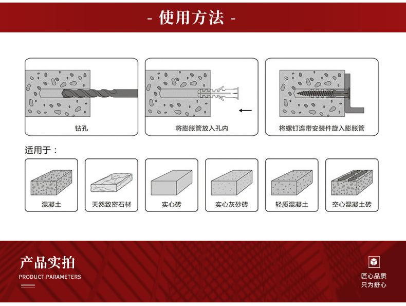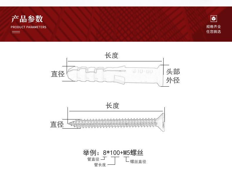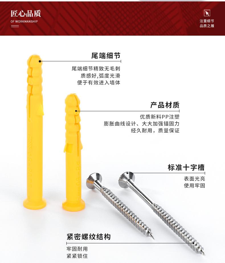 Tornillo de expansión de corvina amarilla pequeña, tapón de goma de acero inoxidable autorroscante, apto para perno de tubo de expansión de plástico de 6/8/10 mm M6M8