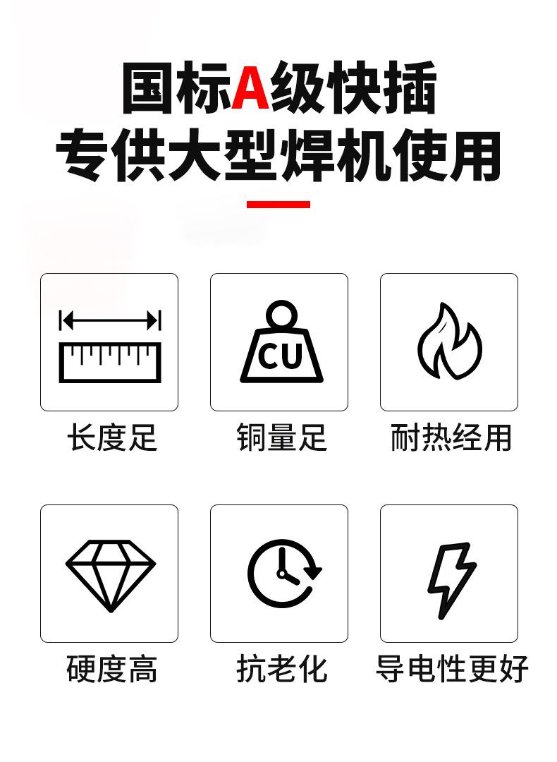 Mango de soldadura para máquina de soldar, cable de enchufe europeo rápido, todo de cobre, enchufe de grado A, cable de enchufe, conector rápido de junta a tope macho y hembra