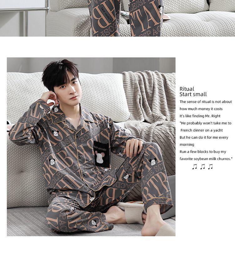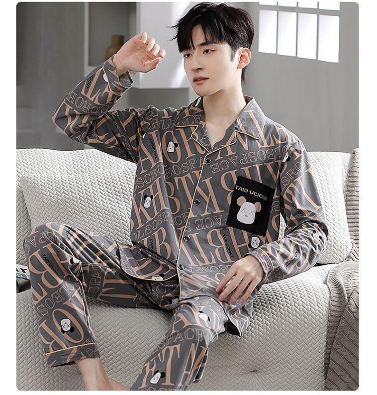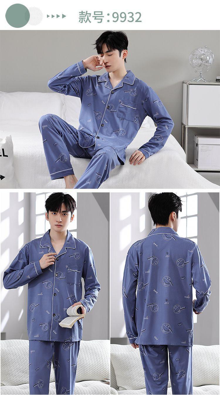 Pijama para hombre 100% algodón, primavera y otoño, manga larga, cárdigan fino, holgado, talla grande, ropa exterior