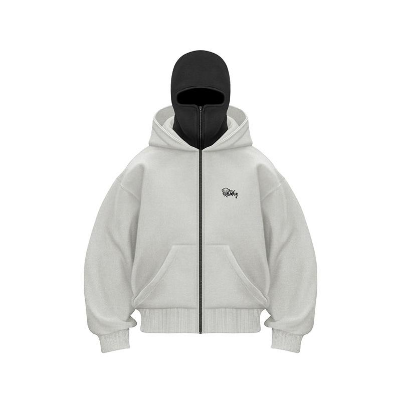 Marca de Moda de Estilo Americano 2024 Diseños de Doble Gorro Suéter Cárdigan con Cremallera de Doble Capucha para Parejas Set Completo Etiqueta