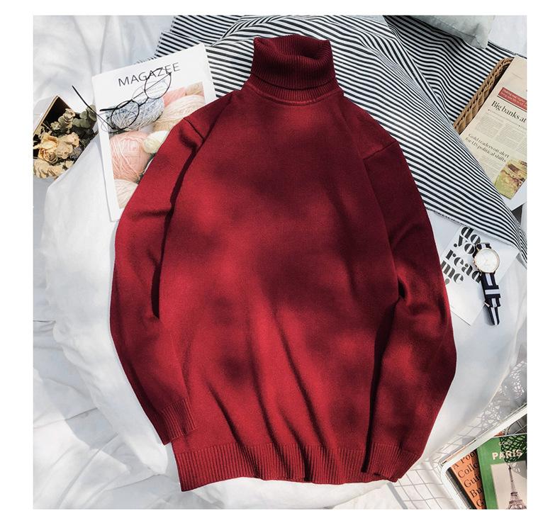 Suéter de cuello alto para hombre, otoño e invierno 2020, nuevo estilo coreano, ajustado, de moda, de color sólido, suéter para hombre
