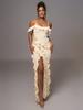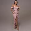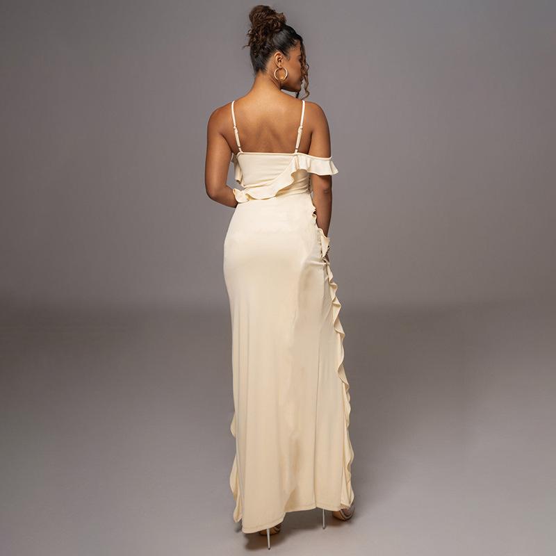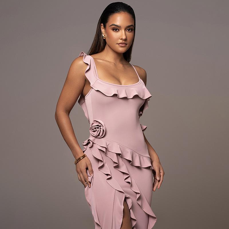 Vestido elegante de malla con tirantes plisados y abertura para fiestas transfronterizas europeas y americanas