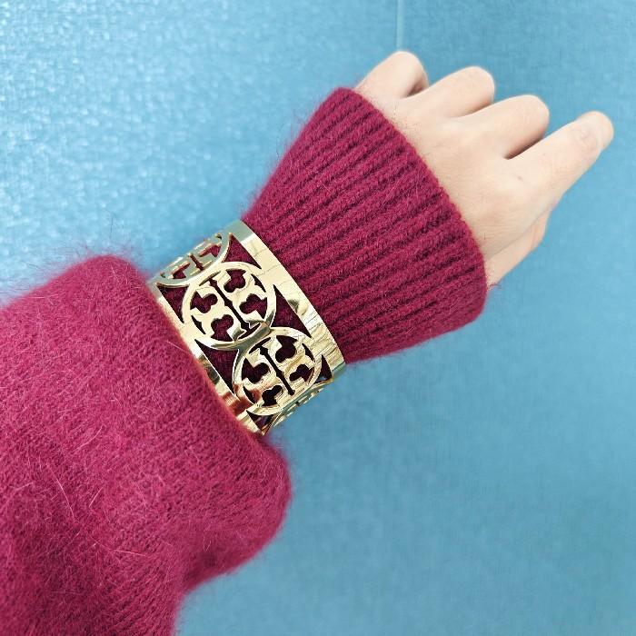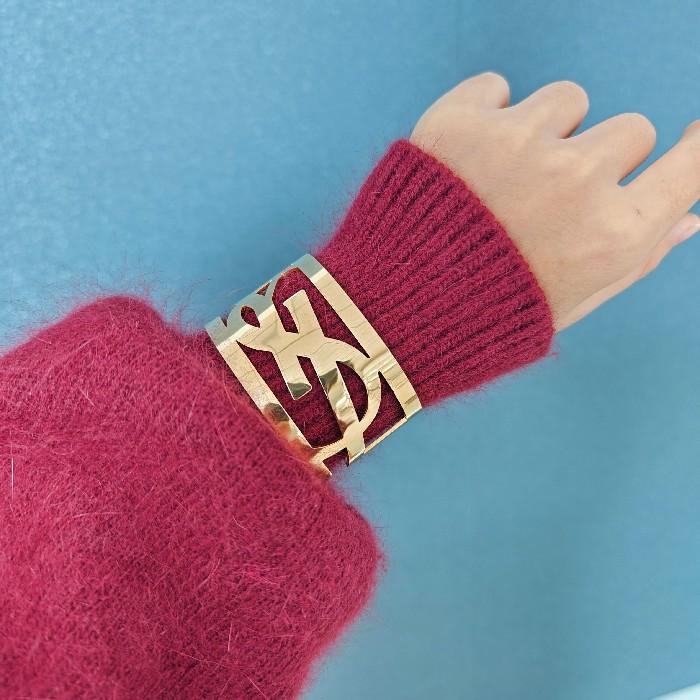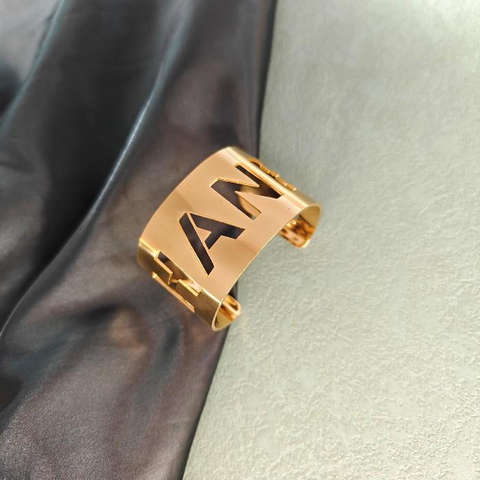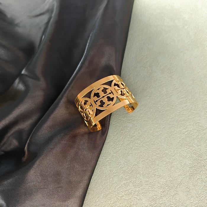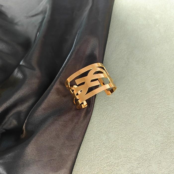 Joyería Exterior Europea y Americana Transfronteriza 2024 Nueva Pulsera Abierta Calada de Acero de Titanio Chapado en Oro de 18K No se Desvanece