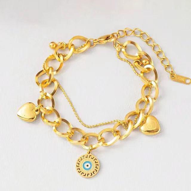 Pulsera europea y americana transfronteriza de acero de titanio moda que no se decolora super textura lisa cubana hip hop doble capa mujer al por mayor