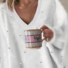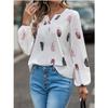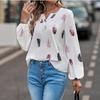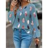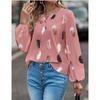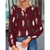 Camiseta holgada de manga larga con cuello en V y estampado de plumas para mujer europea y americana de Amazon, nueva, 2023