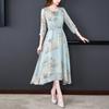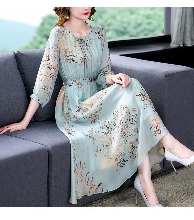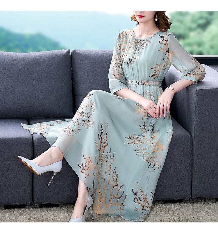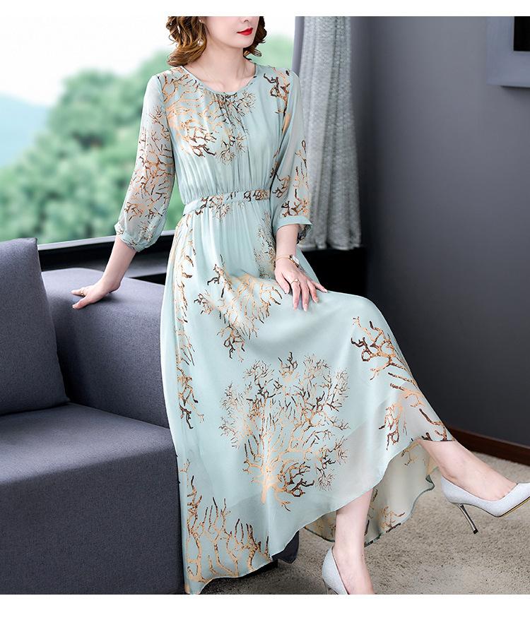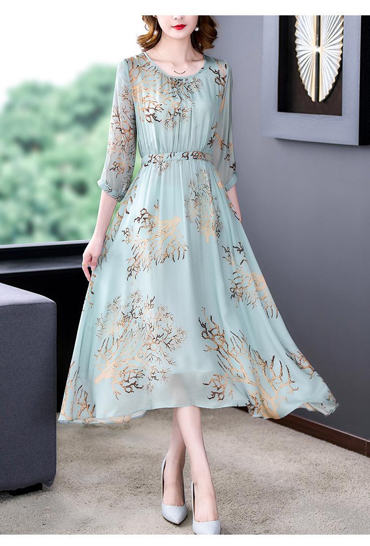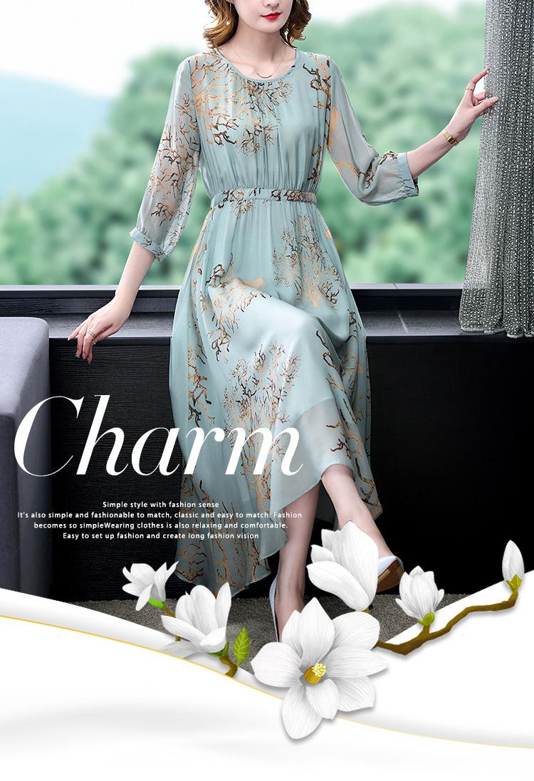 Vestido de Verano Nuevo 2025 de Seda Imitación con Cintura y Falda Floral Francesa Delicada, Falda Larga de Alta Gama y Elegante para Mujer