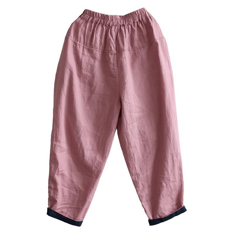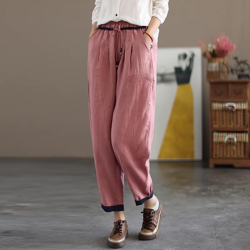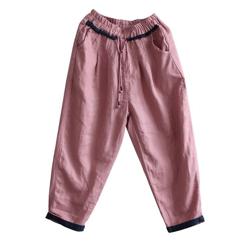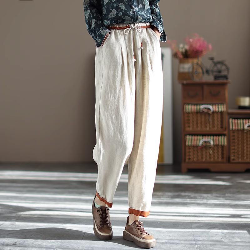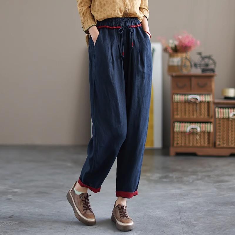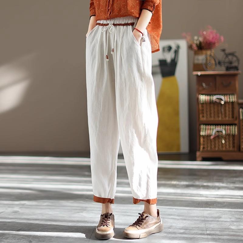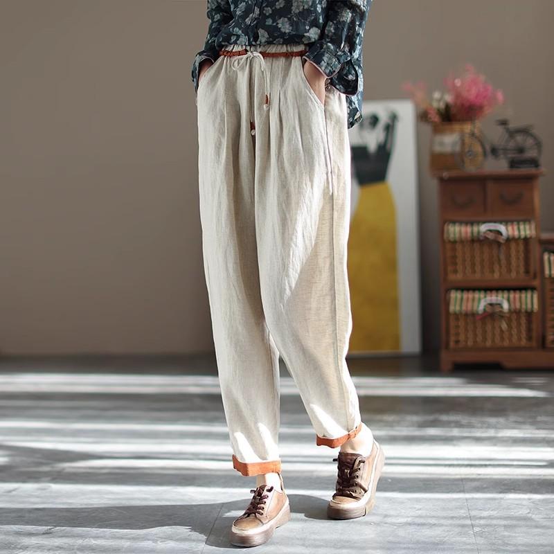 2025 Nuevo Verano Estilo Coreano Talla Grande Simple Elegante Moderno Retro Pantalones Harem Algodón y Lino Pantalones Casuales de Mujer