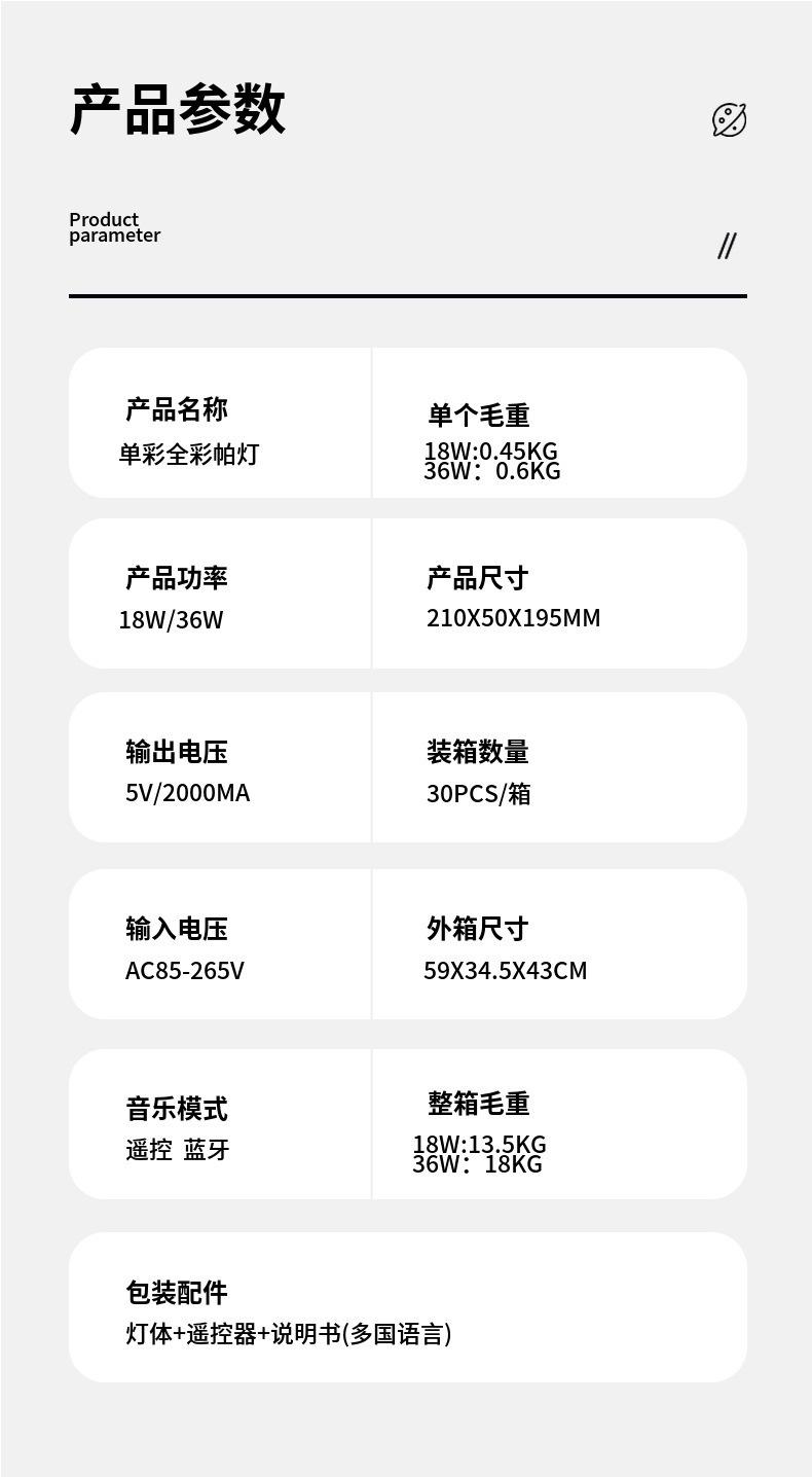 Luces LED18 de 36 luces con control remoto a todo color transfronterizo, cambio de color RGB colorido, teñido de un solo color, luces de escenario KTV para bodas