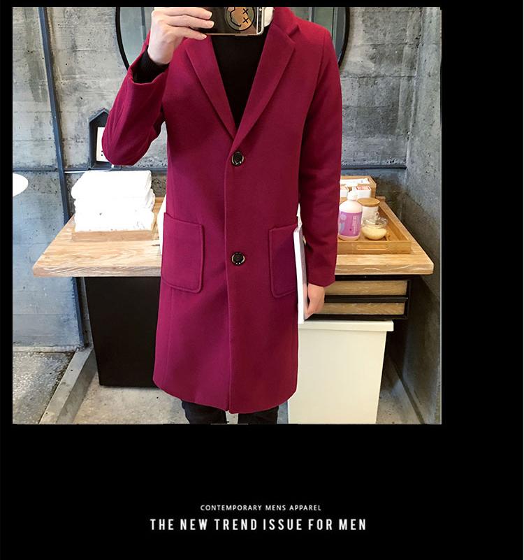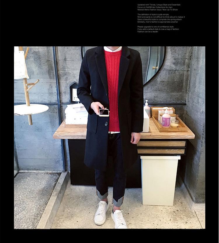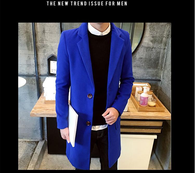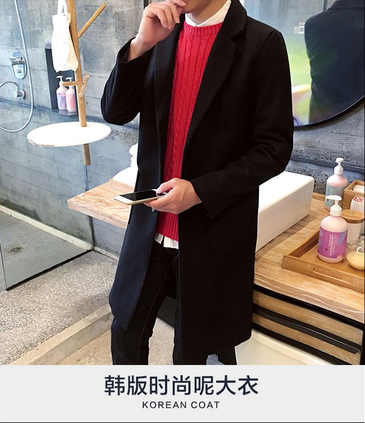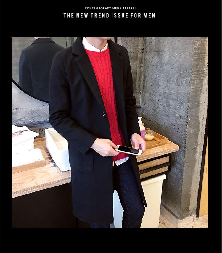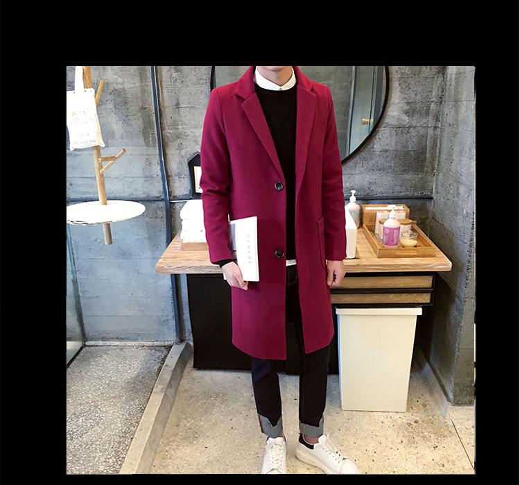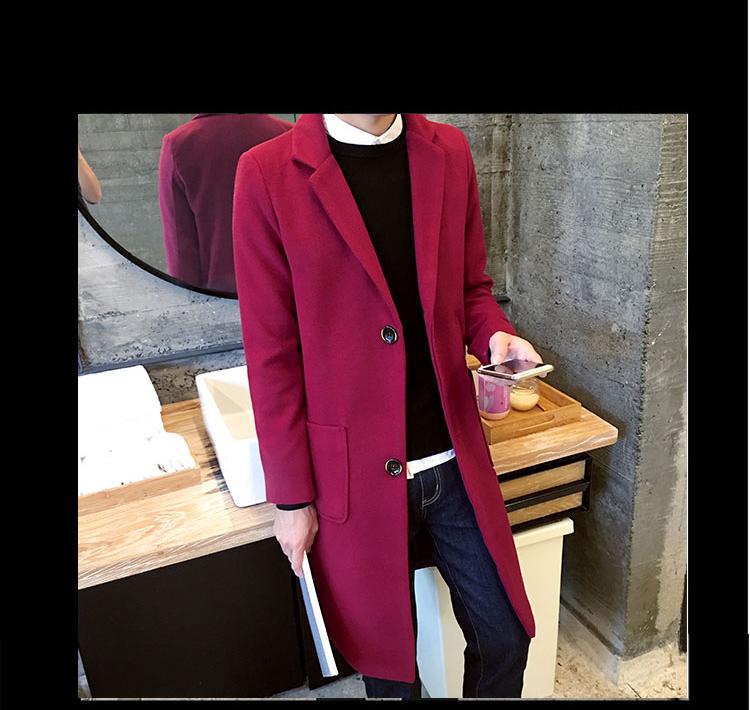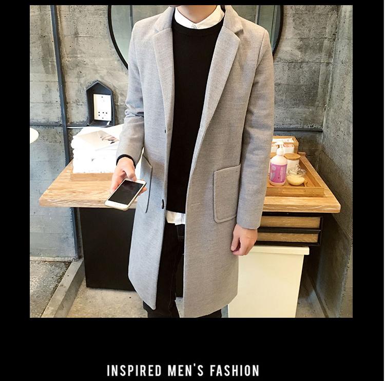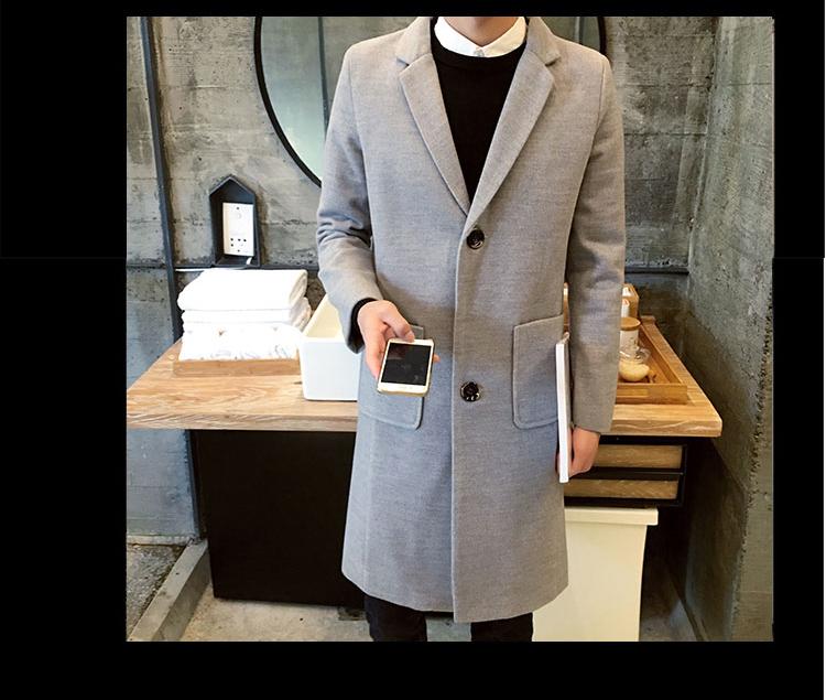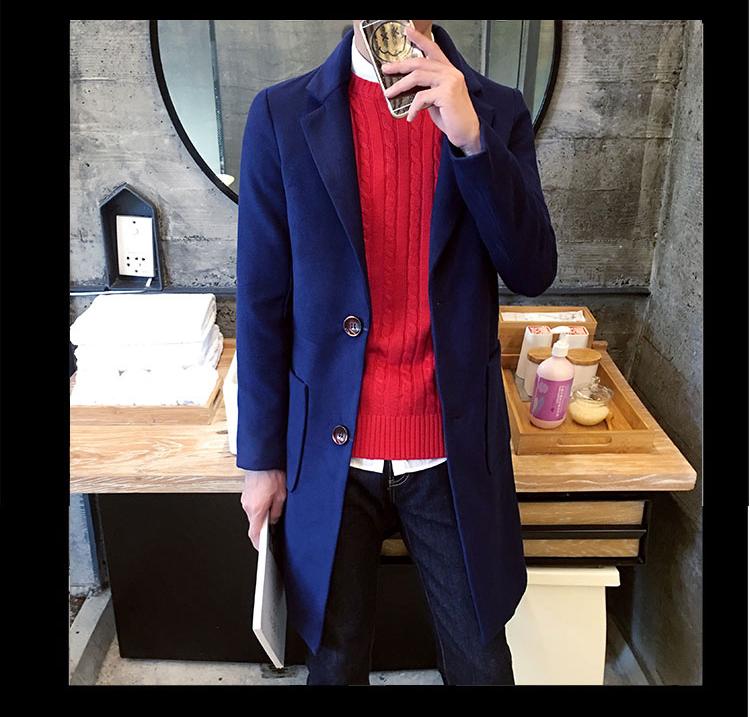 Abrigo de lana ajustado de estilo coreano de longitud media en color liso para hombre, nuevo abrigo de otoño e invierno.