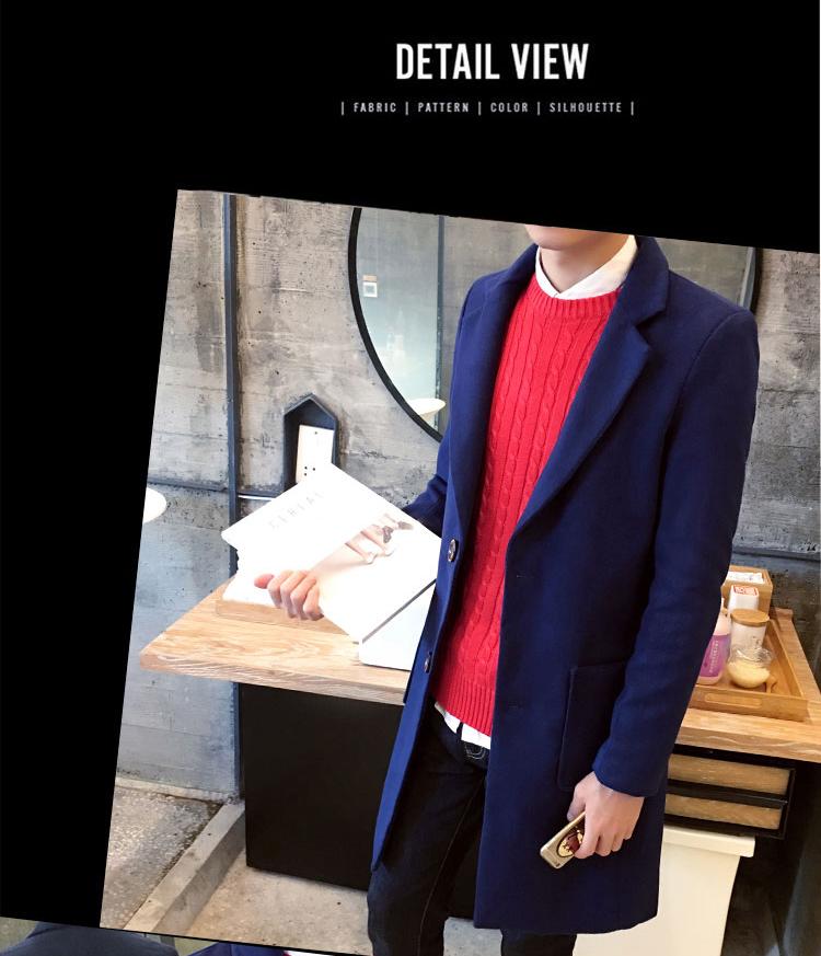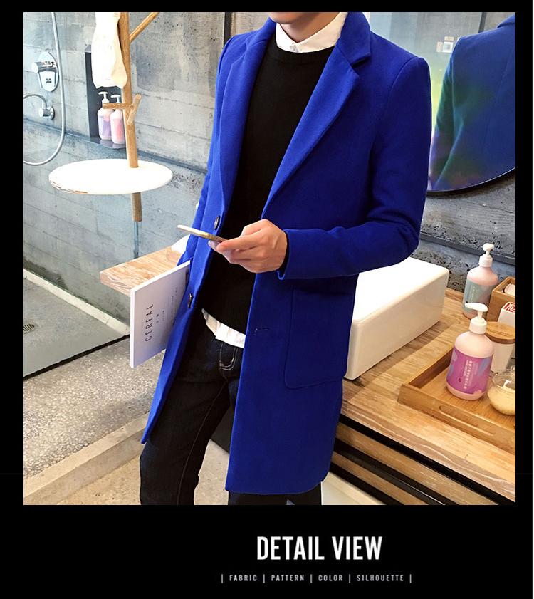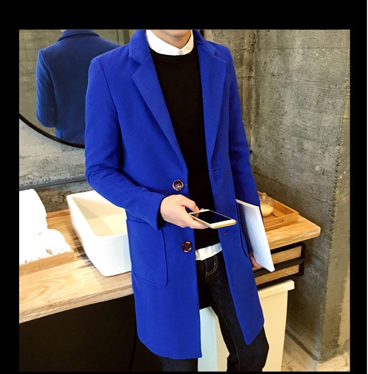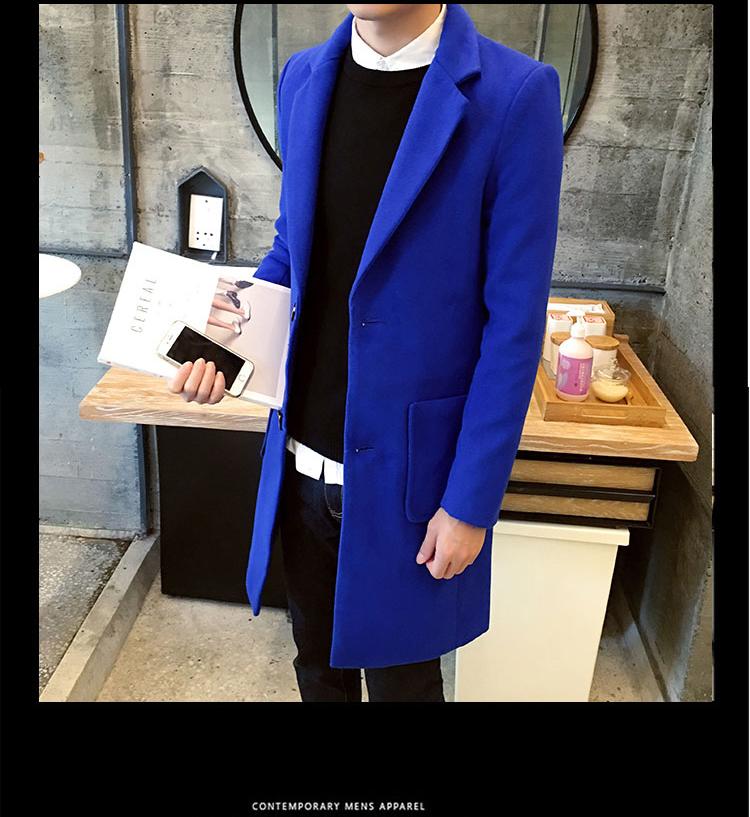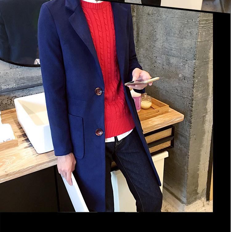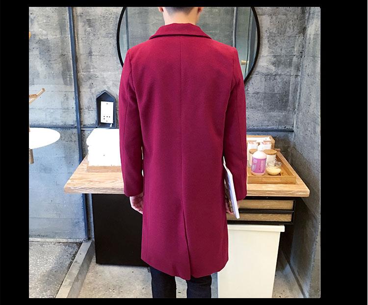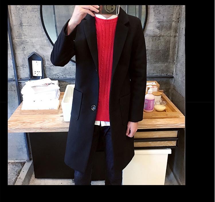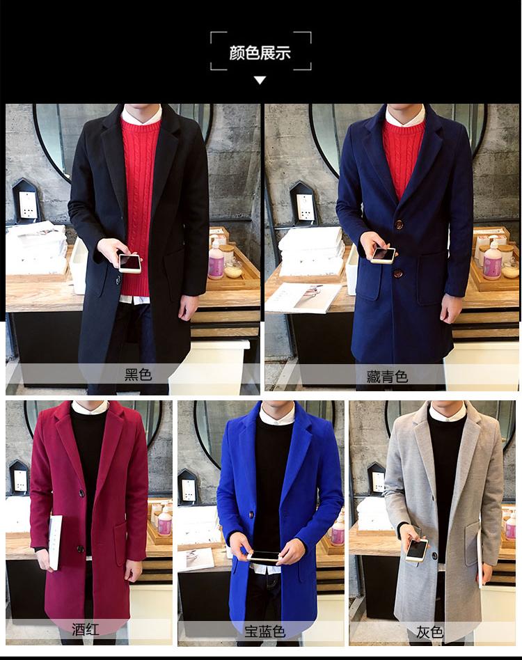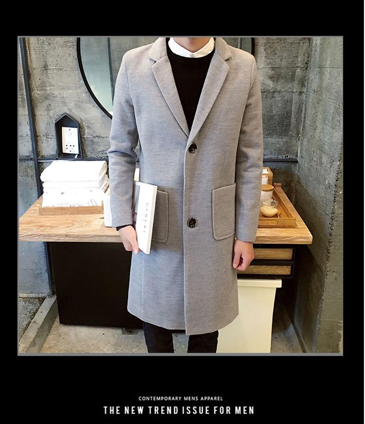 Abrigo de lana ajustado de estilo coreano de longitud media en color liso para hombre, nuevo abrigo de otoño e invierno.
