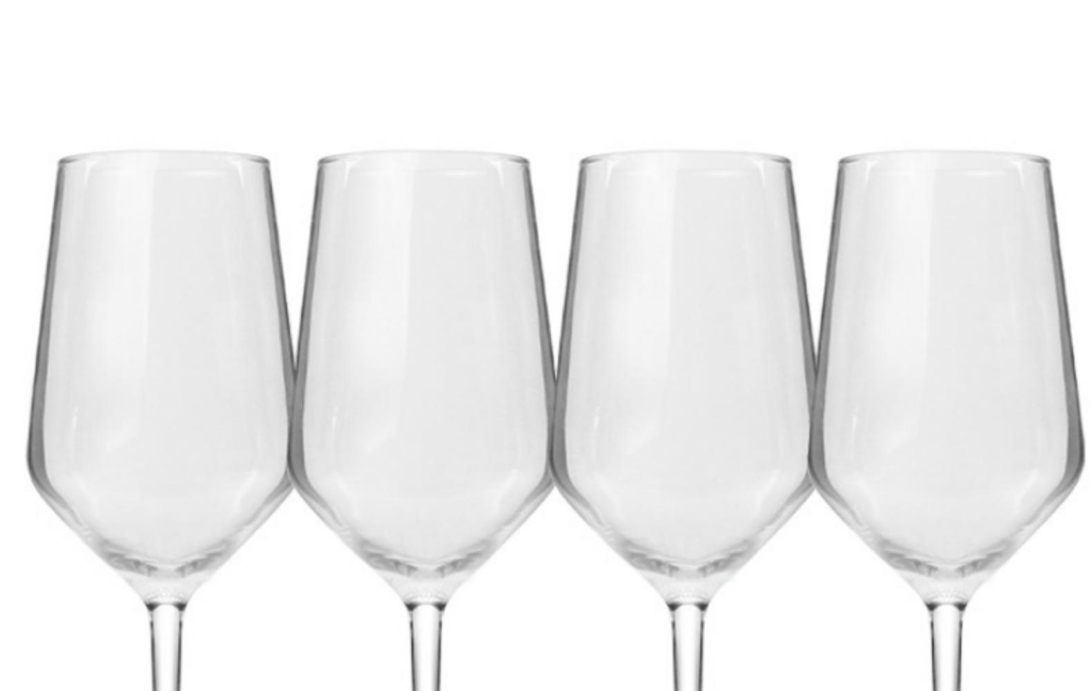 Utensilios para vino: incluye varias copas de vino de pie alto, copas de vino sin tallo, copas de vino dulce, botellas de vino de cuello largo con tapón, copas de whisky, etc.