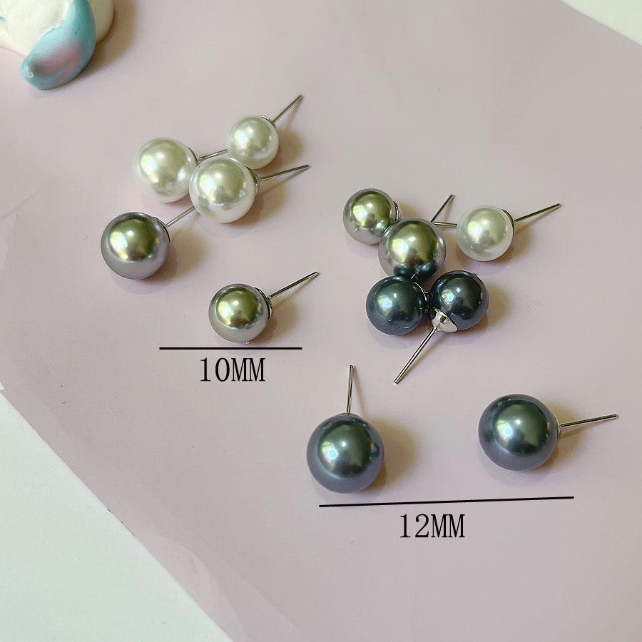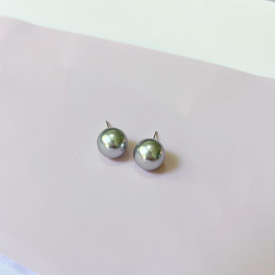 Pendientes de perlas grises plateadas redondas de alta gama Sense para mujer, diseño de nicho simple, temperamento Sense, estilo frío