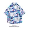 Camisa de manga corta con estampado digital para hombre, nueva camisa informal de manga corta con solapa holgada, de comercio exterior de verano de 2024