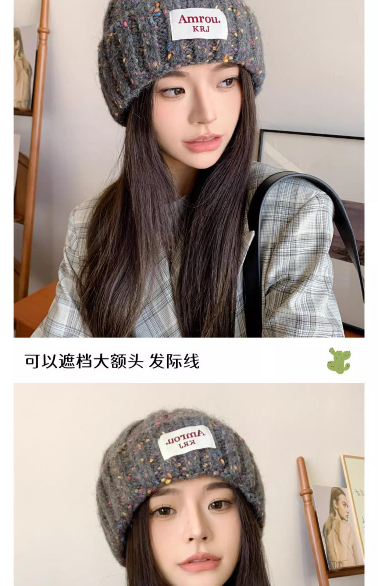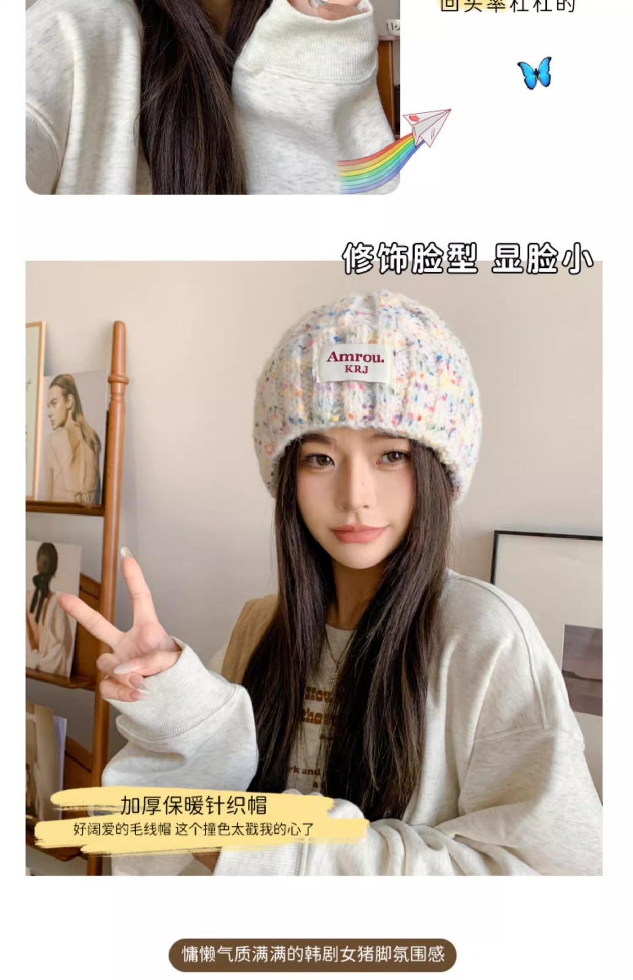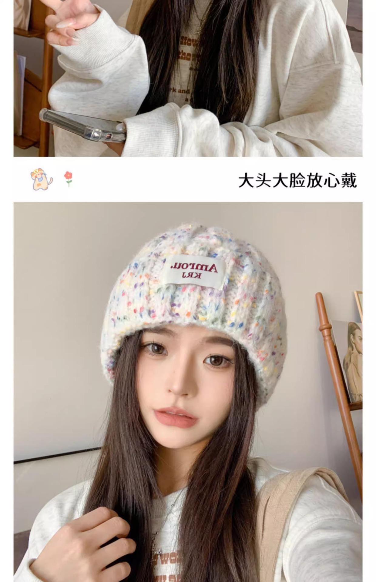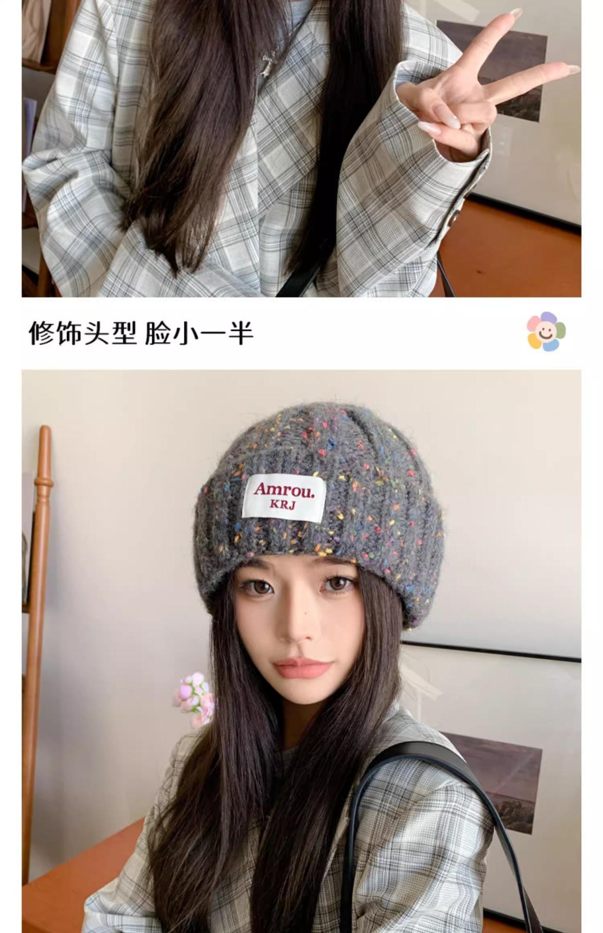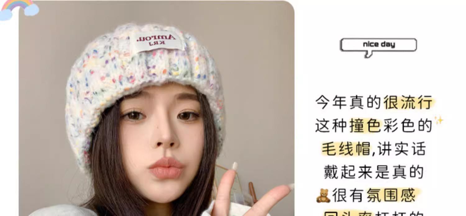 2023 Nuevo Gorro de Punto para Mujer Color Japonés Invierno Gorro de Lana Otoño e Invierno Combinable Cálido para la Cara Gorro de Cubo Pequeño