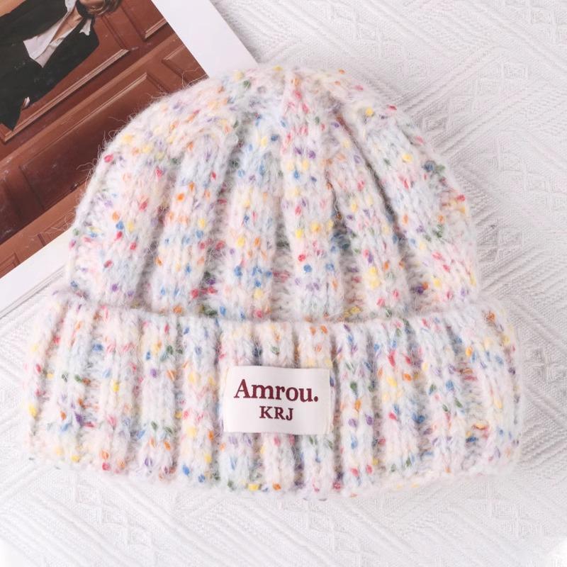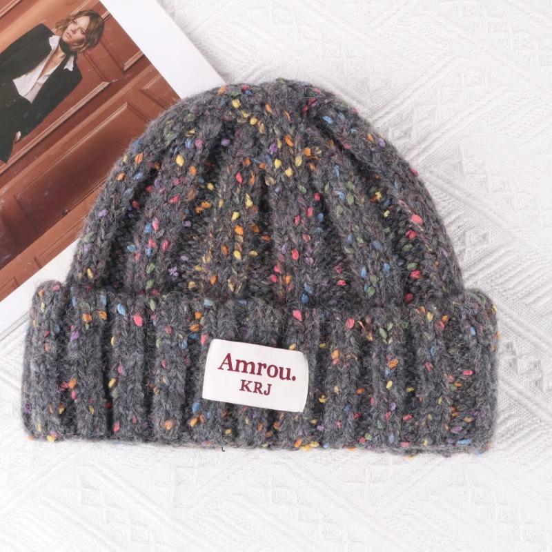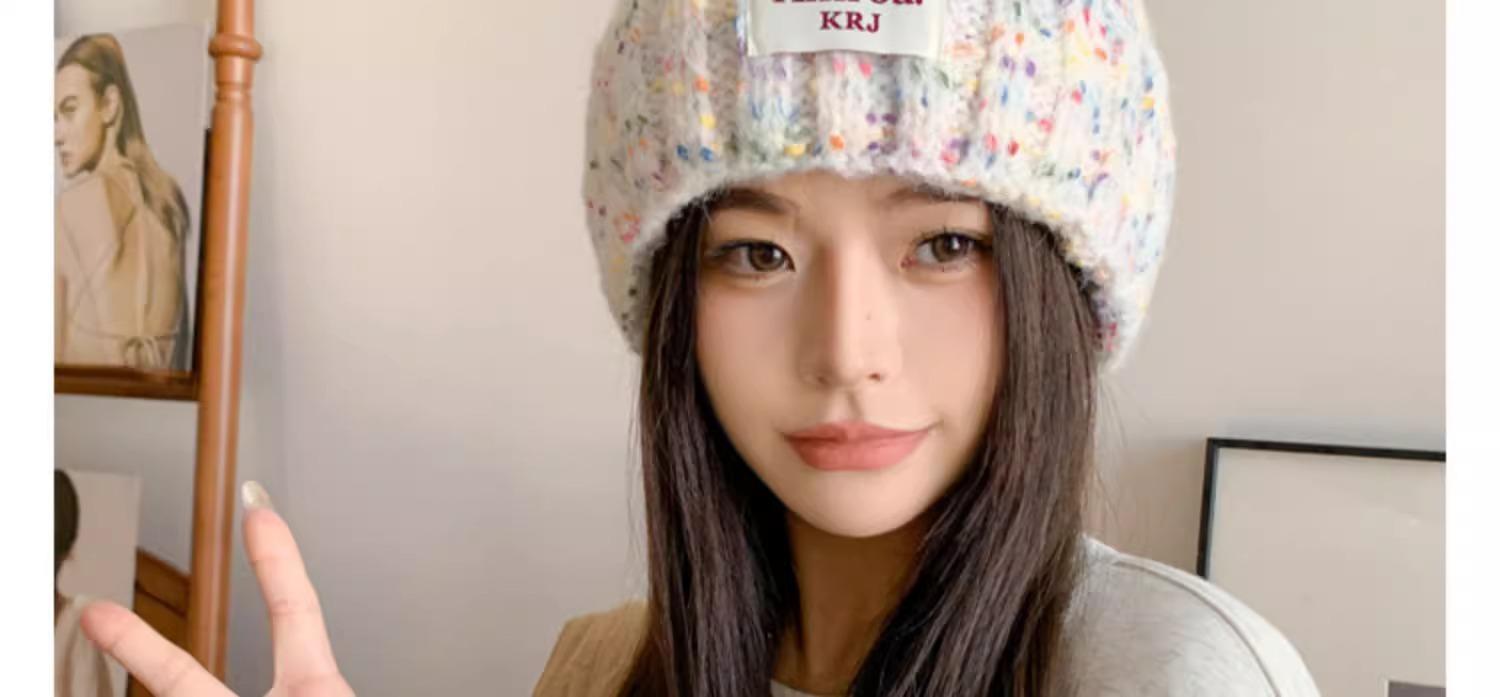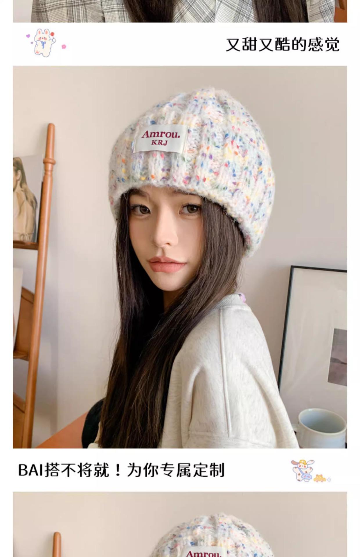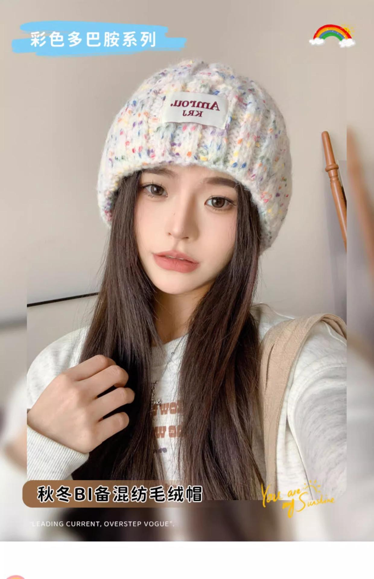 2023 Nuevo Gorro de Punto para Mujer Color Japonés Invierno Gorro de Lana Otoño e Invierno Combinable Cálido para la Cara Gorro de Cubo Pequeño
