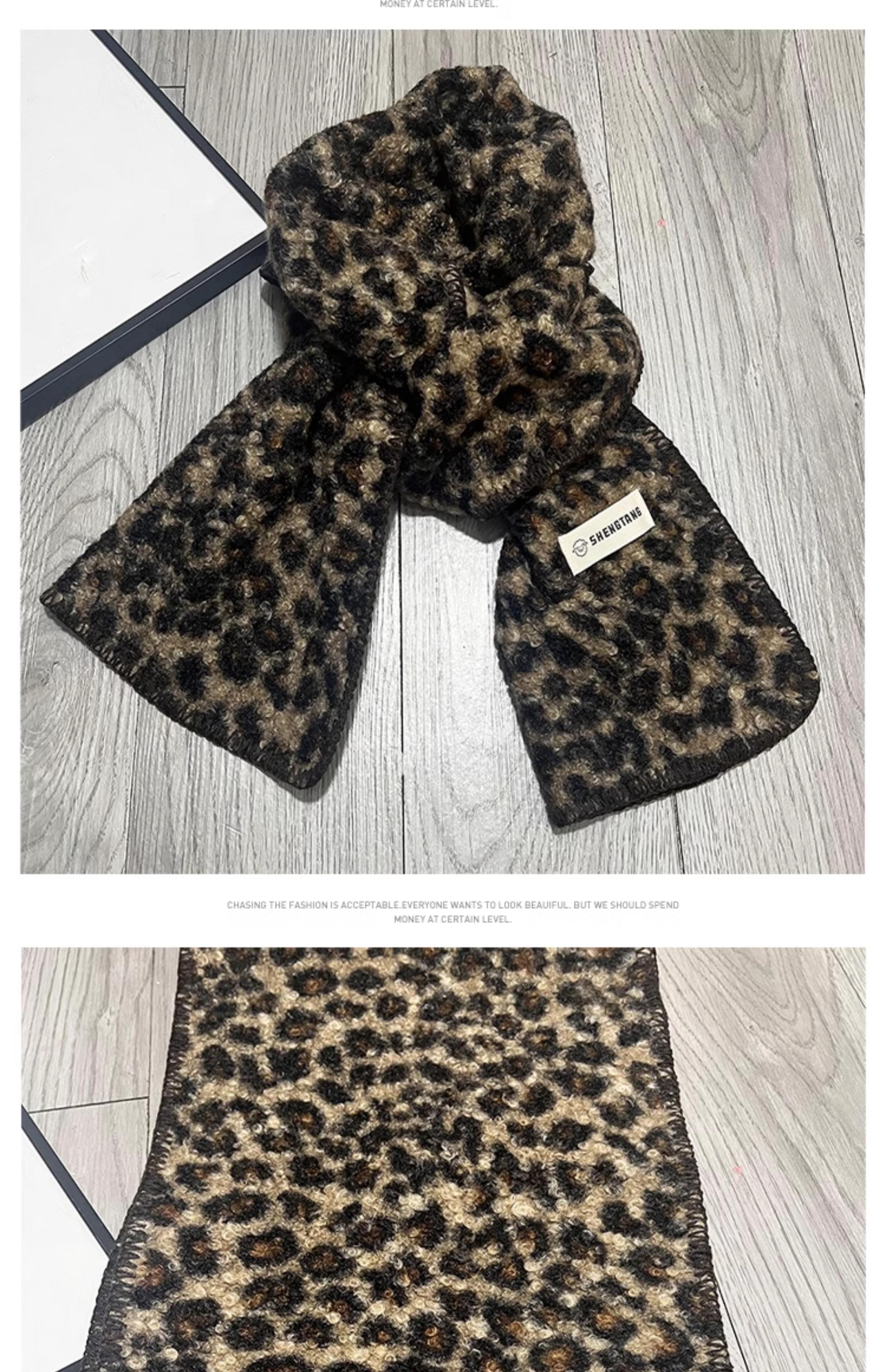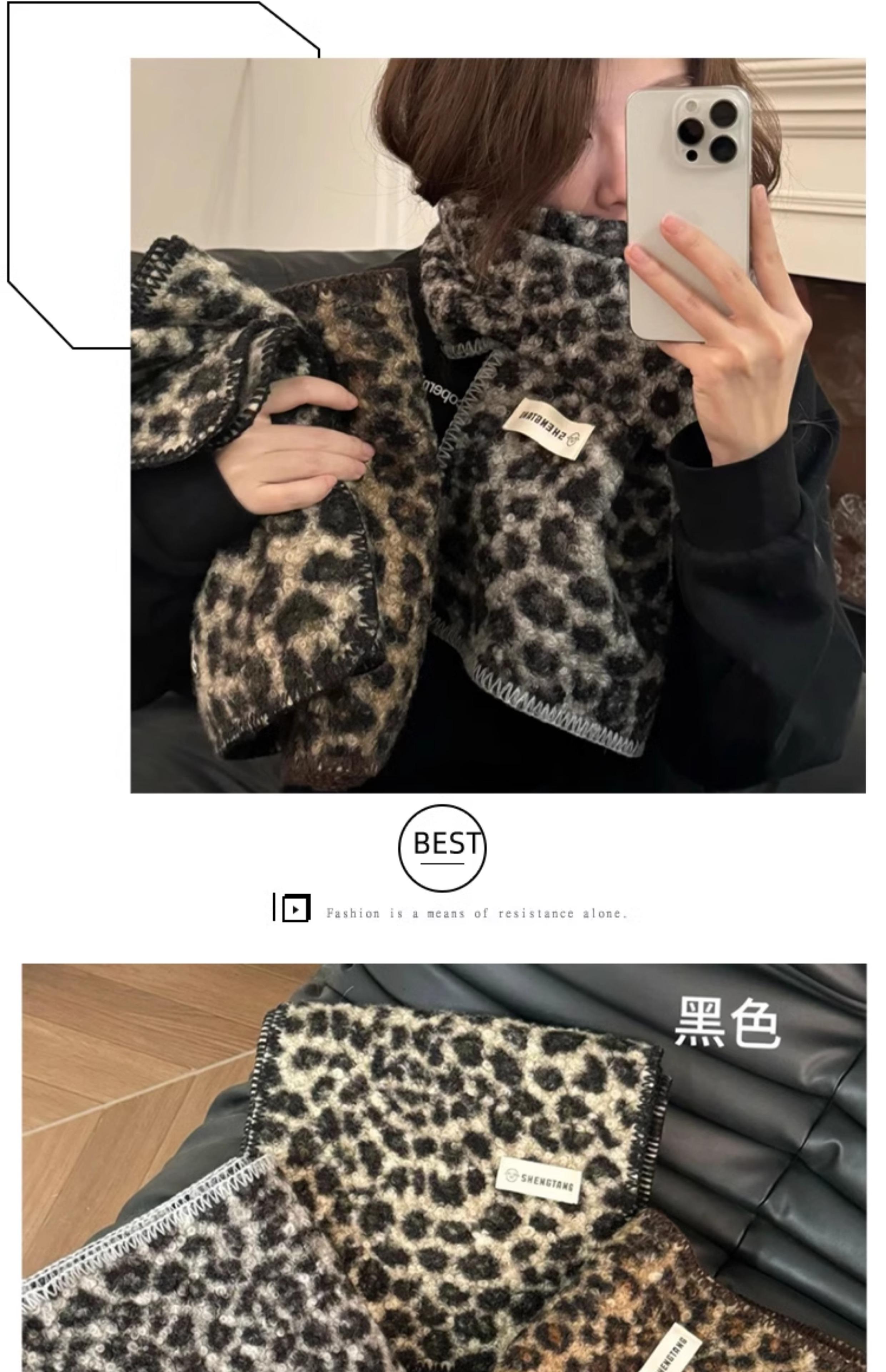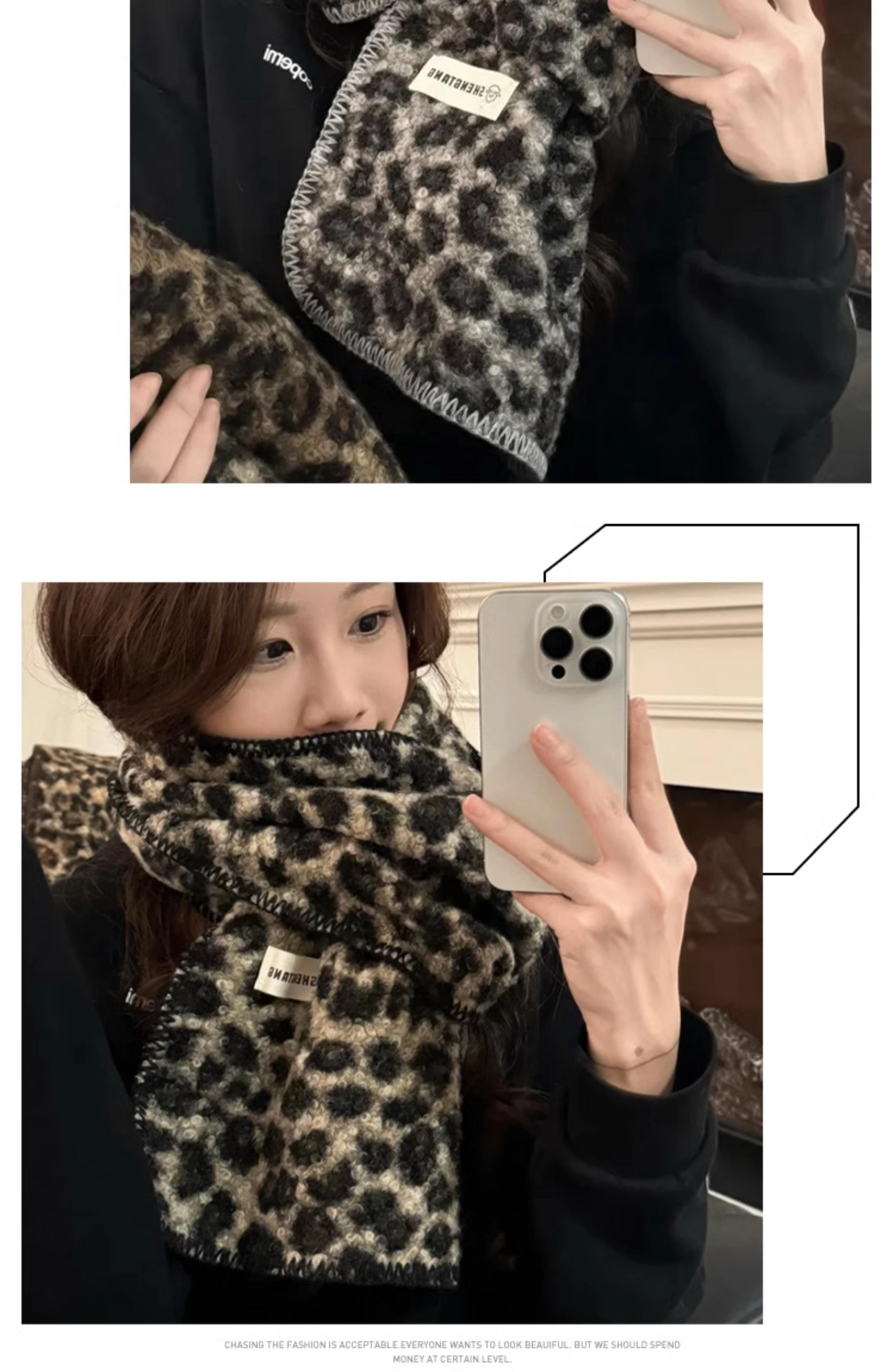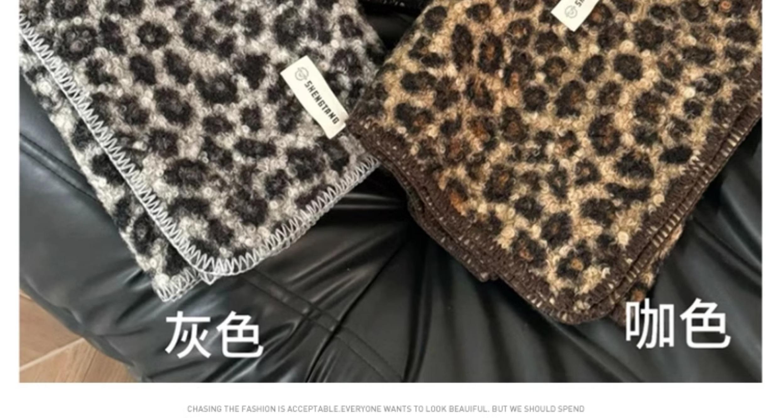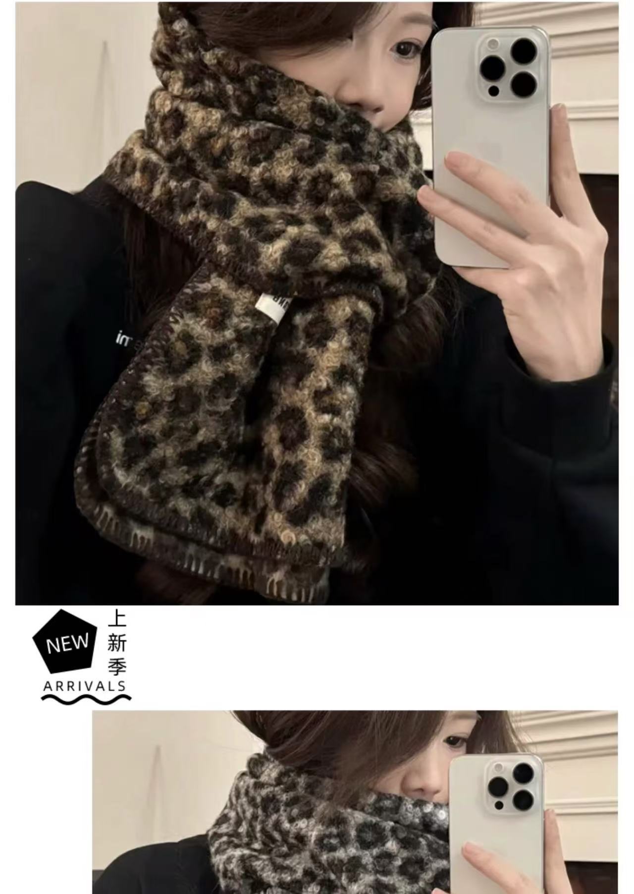 Bufanda de Leopardo de Nicho Otoño e Invierno Combinación Universal Cálida Bufanda Tejida Chal de Lana Cachemira para Mujer Estilo Occidental