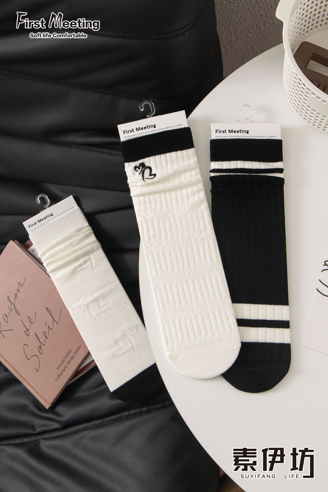 Calcetines de felpa para mujer delgados de primavera y verano Nuevos calcetines bordados de media caña calcetines de doble aguja versátiles casuales transpirables fibra de bambú algodón de bambú cómodos