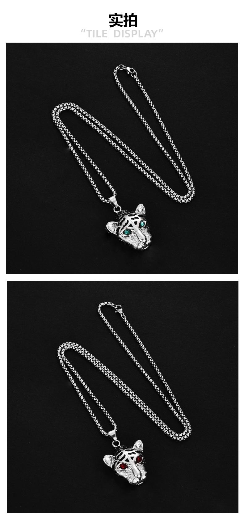 XL0357 green eye leopard head with steel chain 70cm, XL0358 red eye leopard head with steel chain 70cm