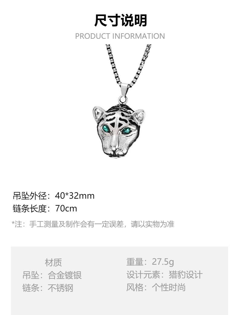 XL0357 green eye leopard head with steel chain 70cm